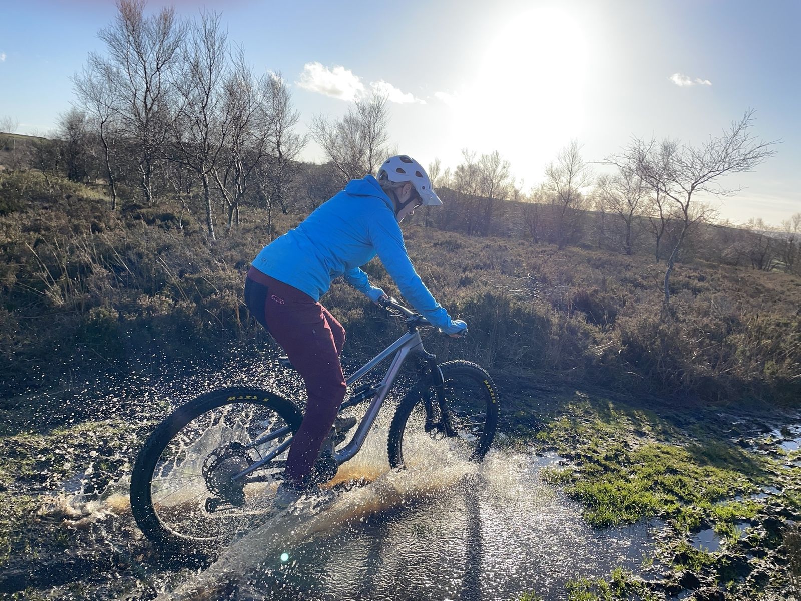 It feels a bit cruel to take this carbon beast from Colorado out into the grit of a West Yorkshire winter, but that’s what we’ll be doing. Those of you with an eye on the many pivots of the Canfield Balanced Formula suspension, watch this space. In fact, since the photos had to be taken with the ‘help’ of Hannah’s kids, we’ve already started testing. They made her do things that made her pull faces.