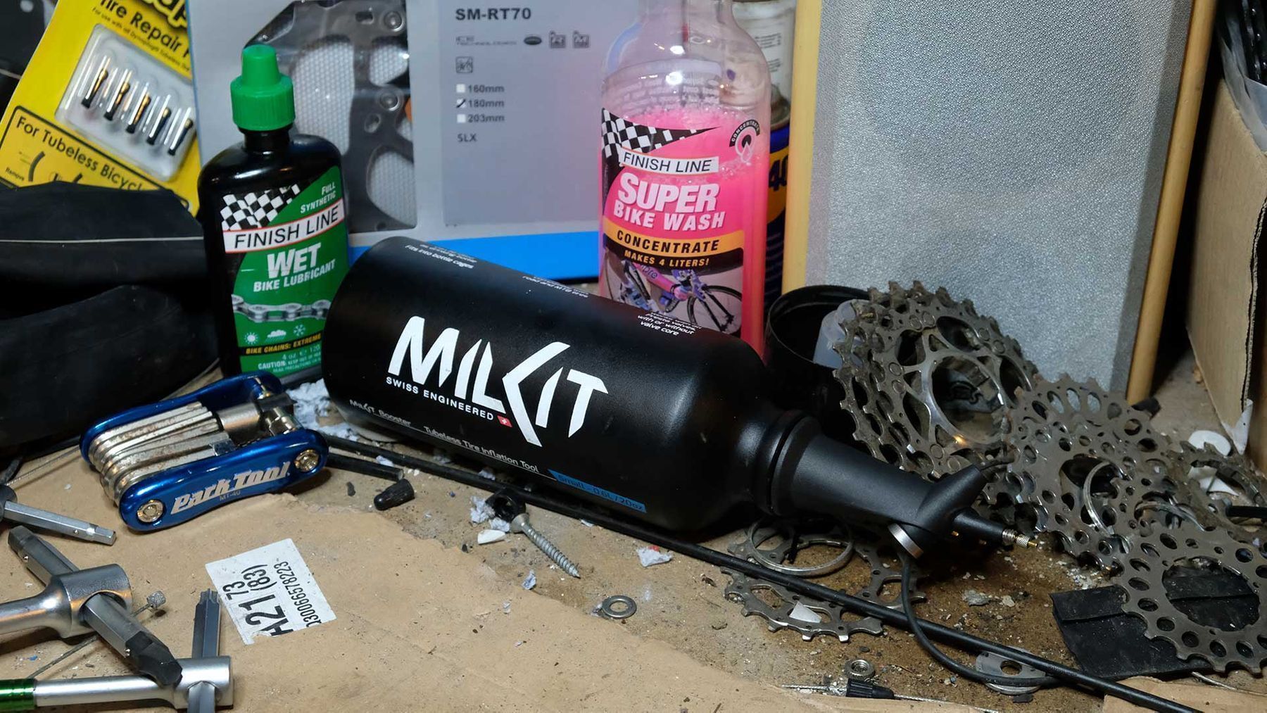 More and more bikes are coming with tubeless ready tyres and wheels, and finishing the set up with sealant and valves like this MilKit set is a task well worth investing a bit of time in – punctures are easier to deal with and may even self-seal, plus you can run lower tyre pressures for more grip. Whether you’re tubeless or not, a track pump makes inflating tyres much easier than the portable one you’ll carry out on the trail. Do your back and arms a favour and invest in a pump like this Truflo Easitrax with built in pressure gauge.