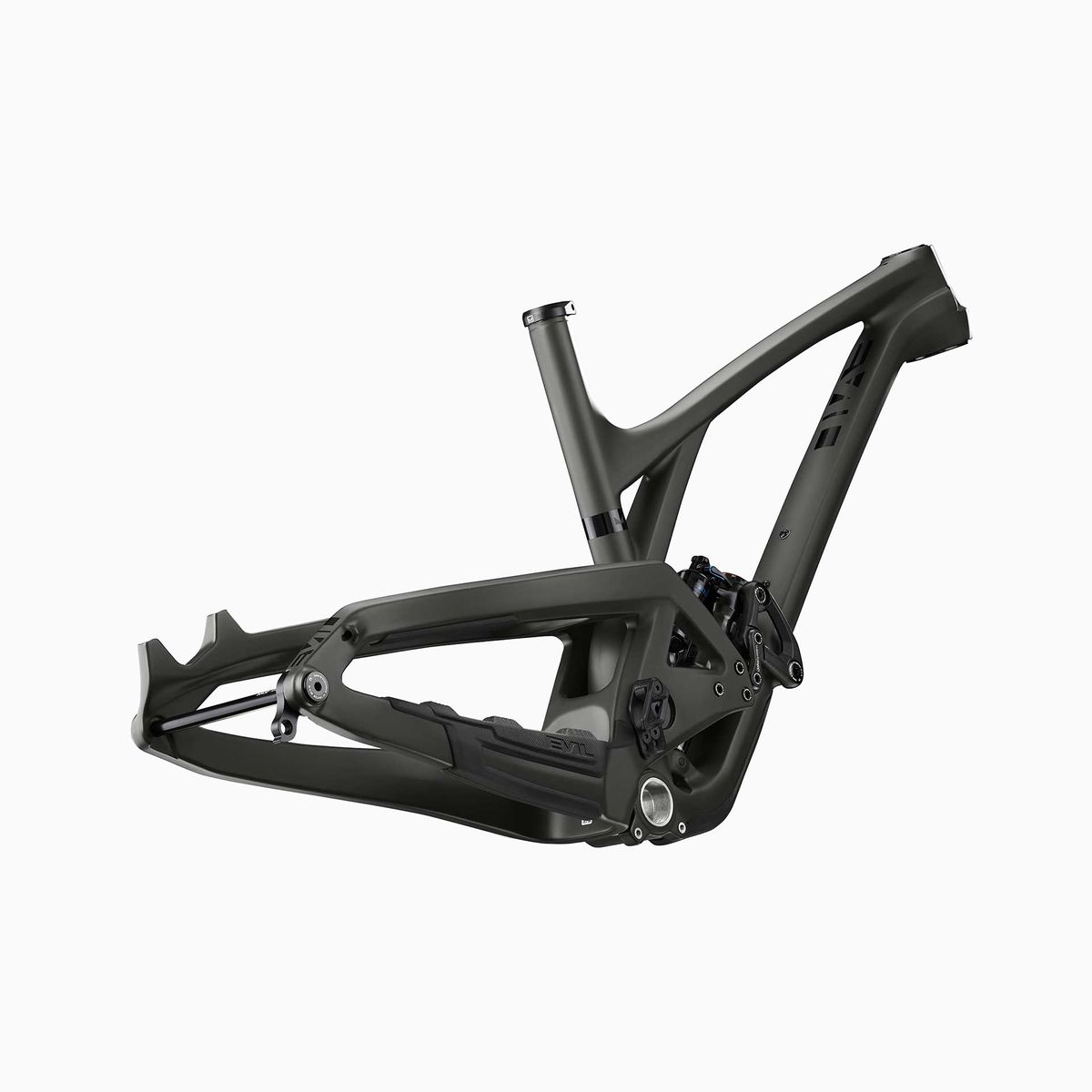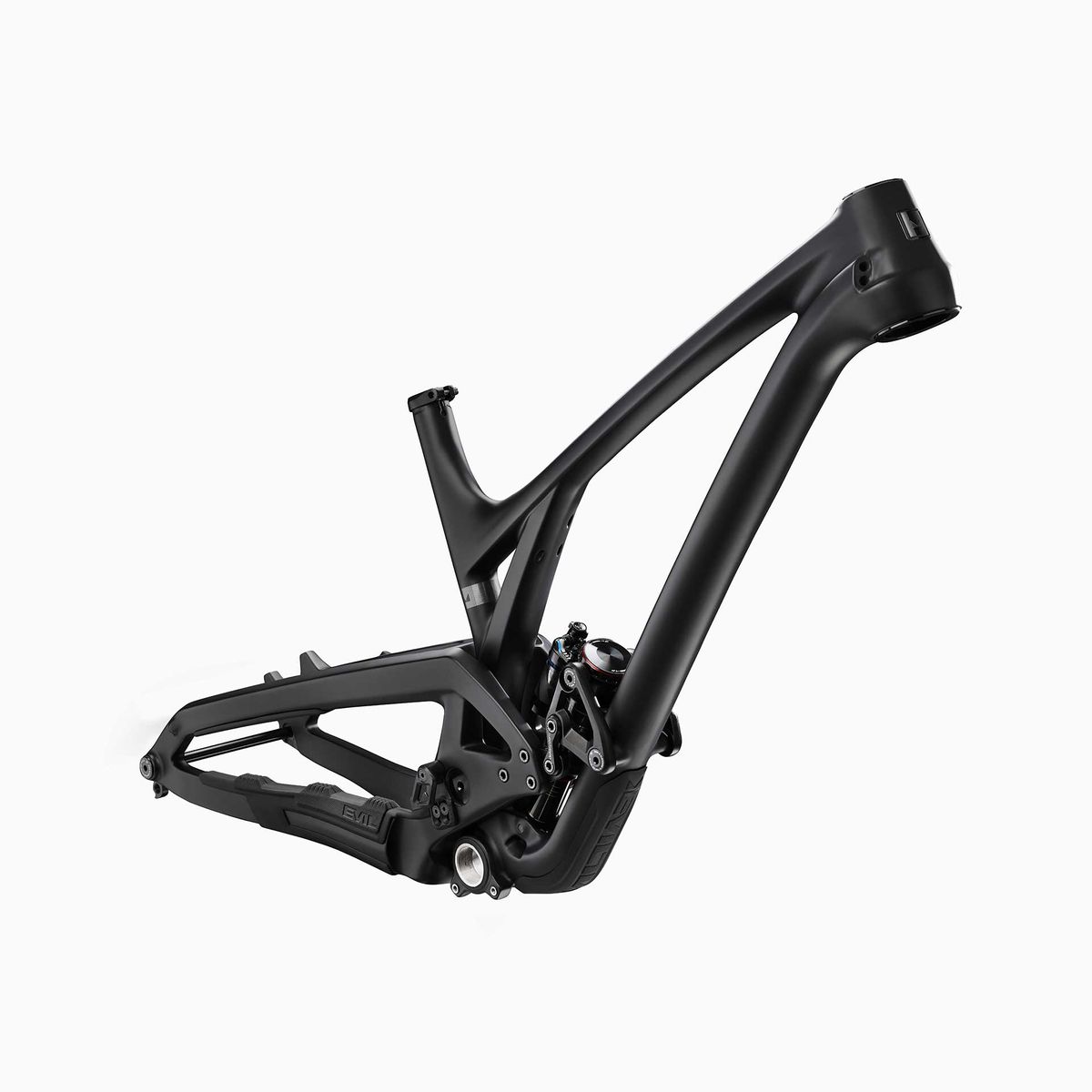 So, what does Evil say about this new bike? There’s all new geometry, a steeper seat tube, 42mm offset forks, internal cable routing, a longer reach and 157mm Superboost. Oh, and it comes in two colours: ‘Blackout Drunk’ which is a satin black and ‘Wasabi Shadow’ which is almost black too.