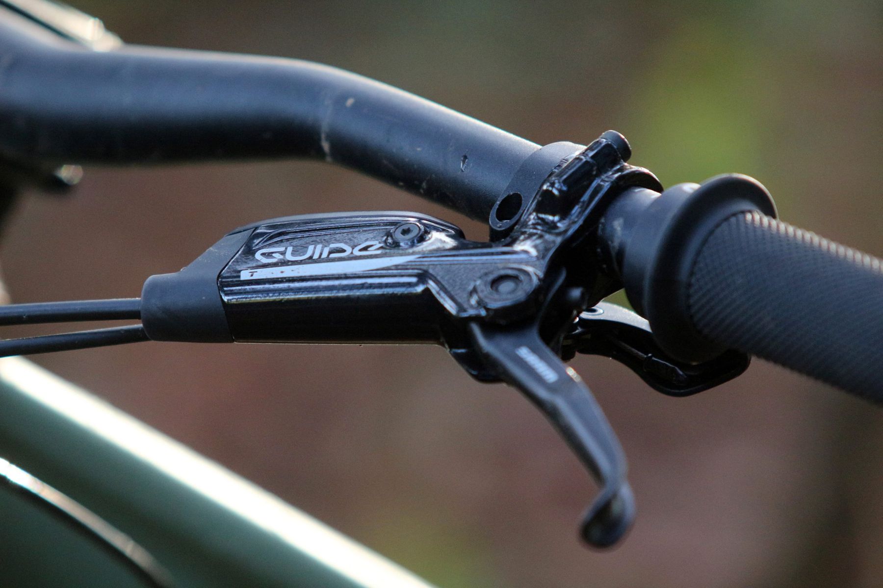 Brakes though are necessary, and the Guide Ts are just a little vague for my taste. I much prefer the SRAM G2s, so it’s a shame they’re out of reach of this price point. The thin grips and squeeze-awhile brakes did make my hands and fingers feel a little tired, but I didn’t suffer from that bashed wrist and jellied arms that can come from a harsh frame. Somehow – perhaps the alloy frame and promises of robustness – made me think I was going to experience every knock the trail had available, but happily I didn’t find this to be the case. Even on rocky trails I found myself happily ploughing on through, without ever feeling like the back end of the bike was kicking me off my pedals.