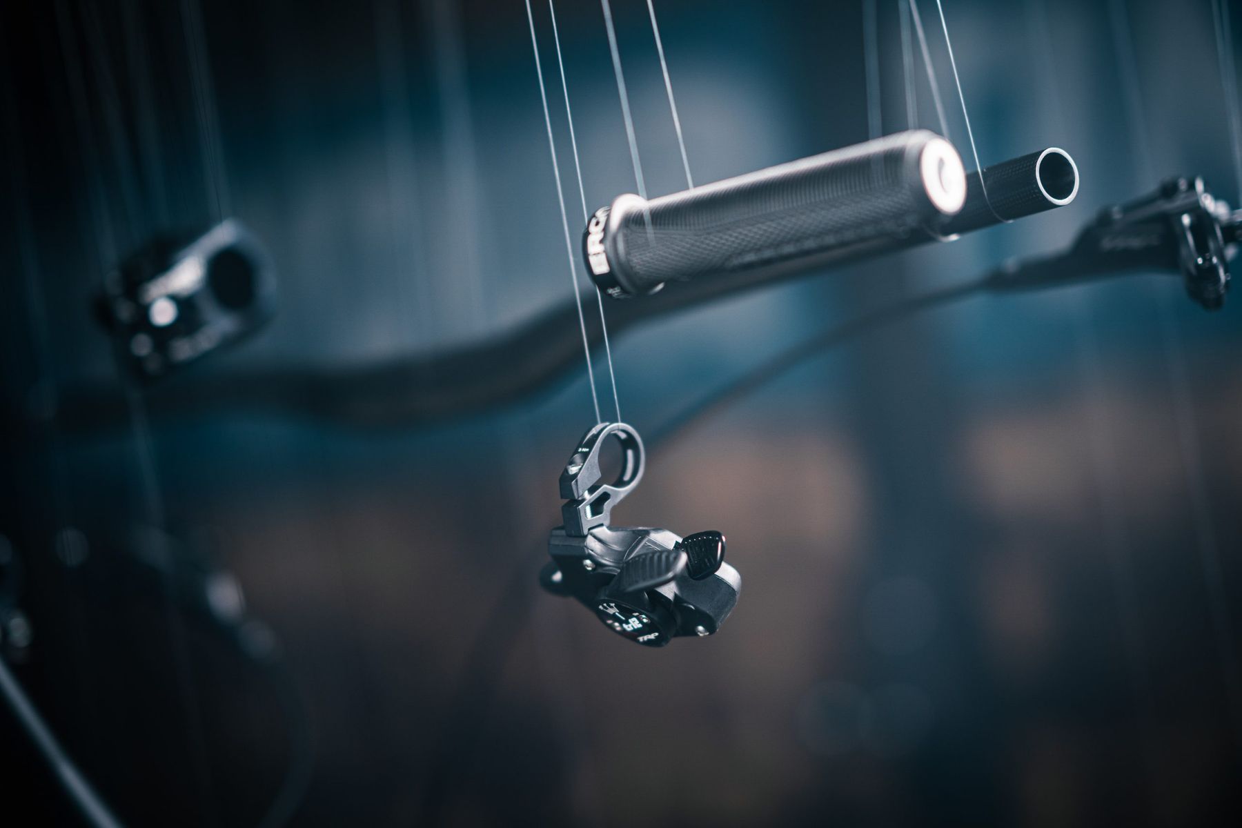 Hailing from TRP, I’ve got the TR12 shifter and mech. Developed in conjunction with Aaron Gwin and his mechanic John Hall, these are laden with unique features designed with only the insight that a pro mechanic and racer can give. There’s the Hall lock that stops the mech rotating round the mech hanger, the neat chain length guide on the lower cage on the mech, and the 40° of adjustment on the shift levers. More than anything else, it’ll be interesting to see if they offer a worthwhile alternative to offerings from SRAM or Shimano.