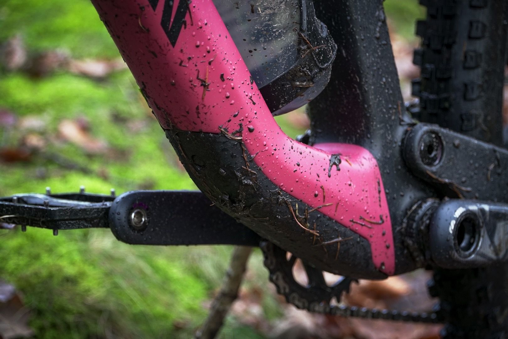 Oh, but we haven’t finished yet! There’s a flip-chip on the linkage to tweak the geo by 0.5-degree, room for a water bottle and even a single bolt under the top tube for fastening tools and accessories too. Plus there is plenty of rubber protection on the chainstays, under the downtube and in the chain guide to ensure all you hear on the trail is your tyres, not the chain!