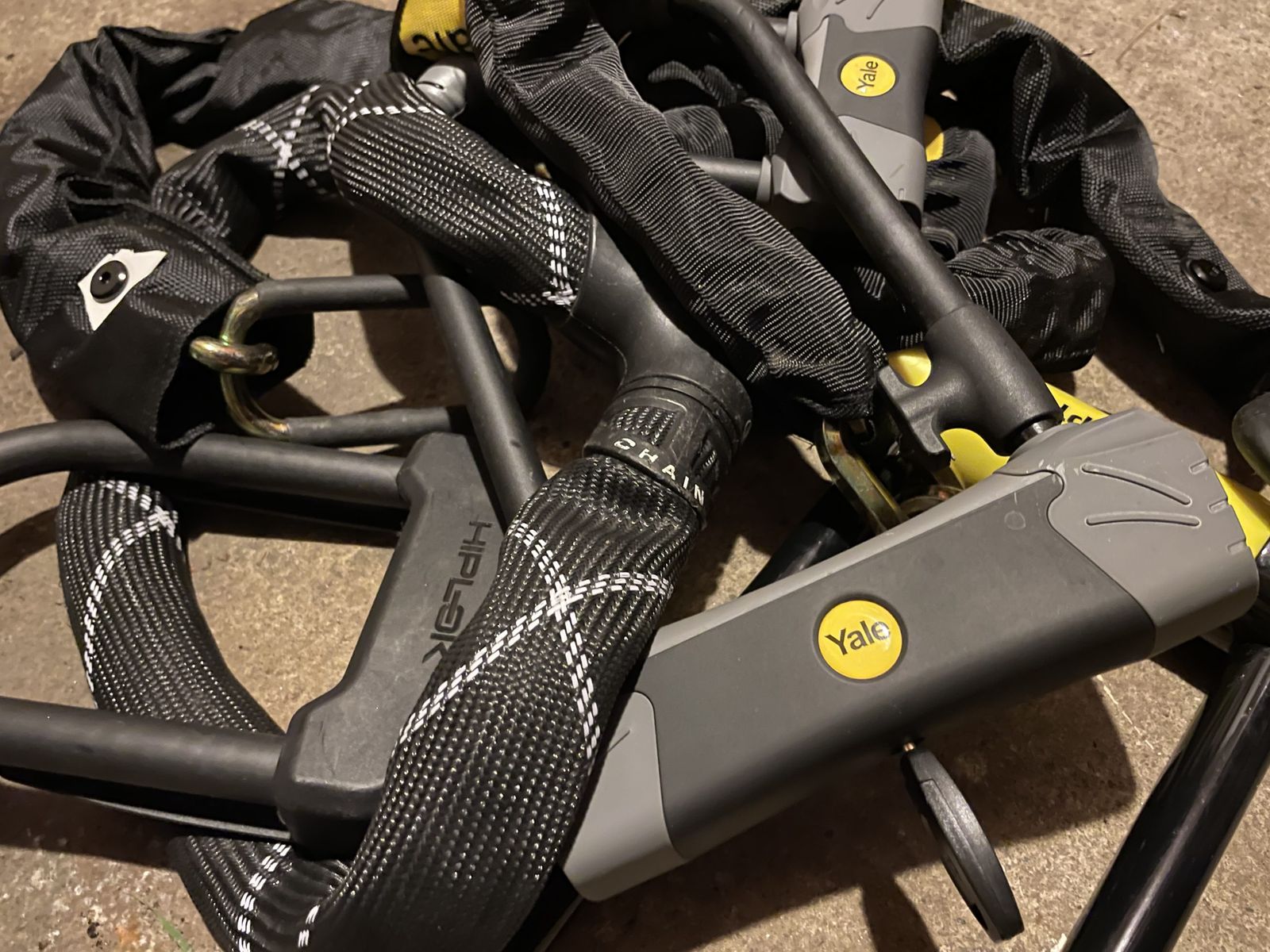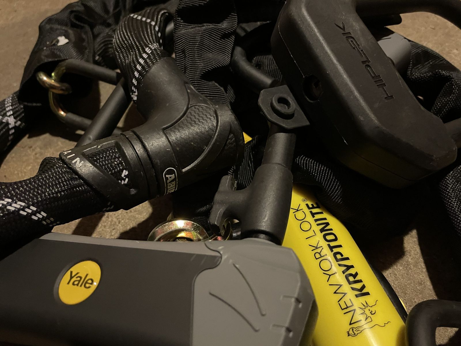 Going out and about if not really want to leave any of my bikes locked up anywhere – at work I have an older New York lock and tend to take in a hiplock gold chain as added security. But it is in a locked cage with cctv which hopefully helps ‍♂️