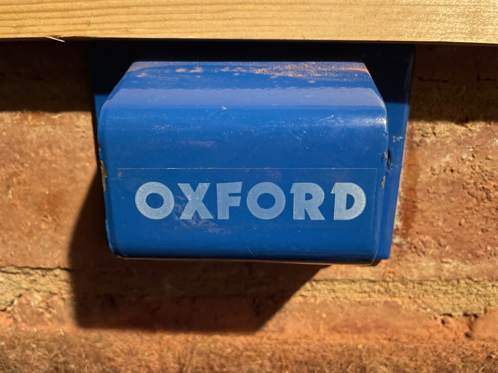 You need a fixing point. If your garage or shed doesn’t have one, I think the Oxford Brute Force Anchor does the job at a fraction of the price of the Kryptonite. Just make sure you fit any anchor according to instructions – there’s no point in having it if your thieves can just pry it off!
