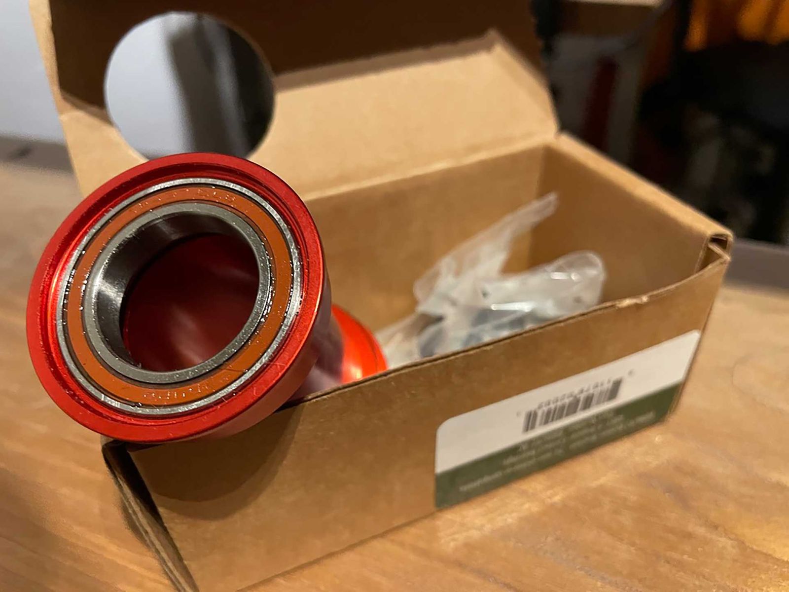 Featuring double-lip-sealed Enduro angular contact bearings for long life, these ABEC5 bearings should be up to our Yorkshire weather. The Made in the USA, press-in bottom bracket features neatly machined sleeves slide into each other to create a good seal, helped by O-rings to keep the weather out. Or at least the kind of weather that doesn’t have a storm name associated with it!