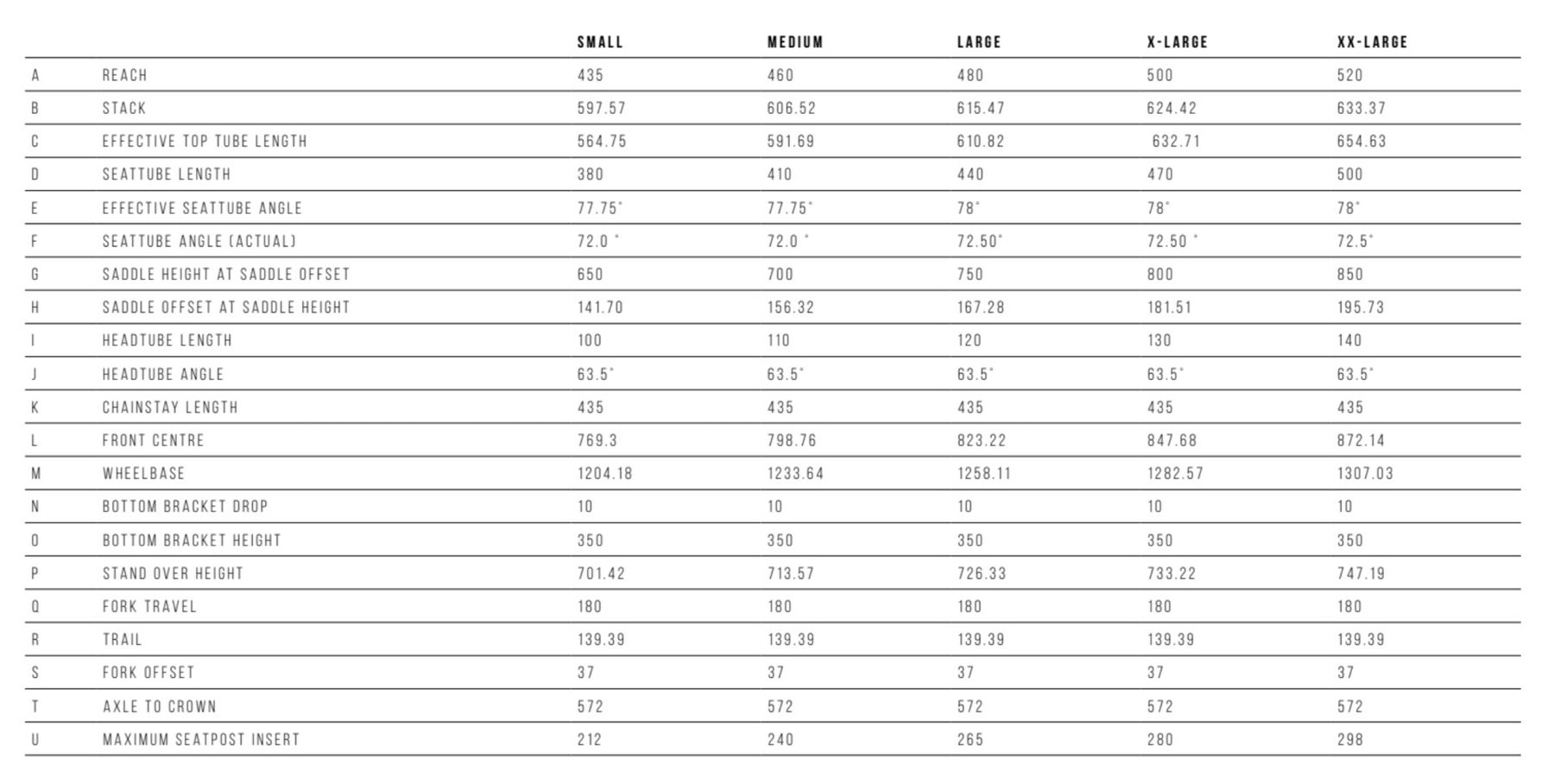 Being modern means we get a long and low geometry, but it’s not as extreme as some bikes we’ve tested over the past 12 months. I’ll include a full geometry chart below, but a medium-sized bike has a 455mm reach (460mm in 27.5in) while a large has 480mm. In comparison, a Commencal Meta AM has a 495mm reach for a large, and a Pole Taival is 480mm on a medium! The head-tube angle is slack at 63.5 degrees, not that you would notice while riding, and the seat angle is placed at 77.75 degrees (or 78 degrees on L-XXL) which plants you in a very comfortable and efficient position for spinning up climbs.