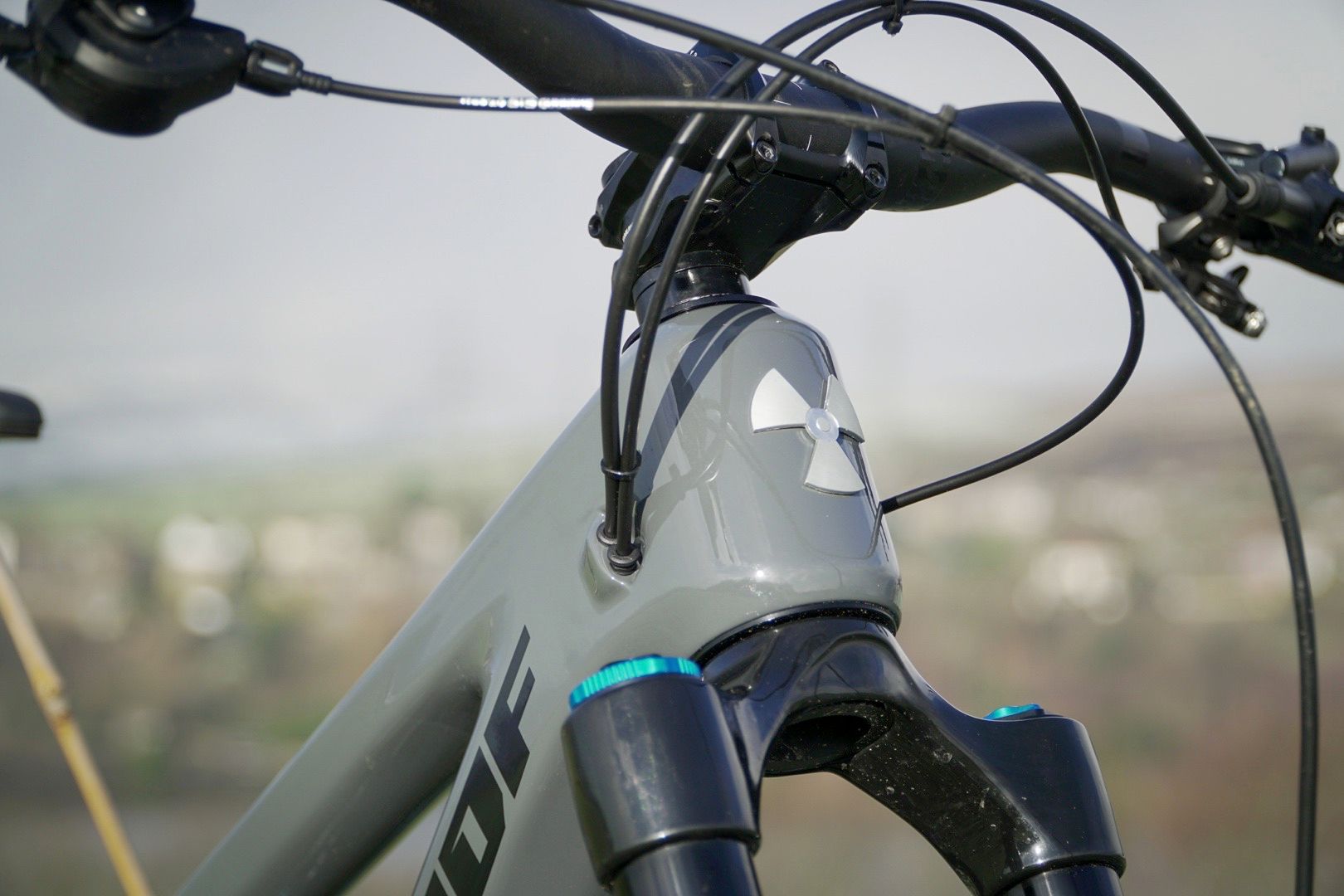 Hidden away in the rear suspension system are Enduro Max Bearing which promises long life and smooth operation, great for the current winter conditions. Most riders will also be happy to see that the Giga uses a 73mm threaded BB, comes with an integrated rear mud-guard (yes, I forgot to fit it) a clear paint protection kit to protect your paintwork and plenty of 3D contoured rubber frame protection for a quiet ride. Being carbon, the Giga also uses internal cable and hose routing.