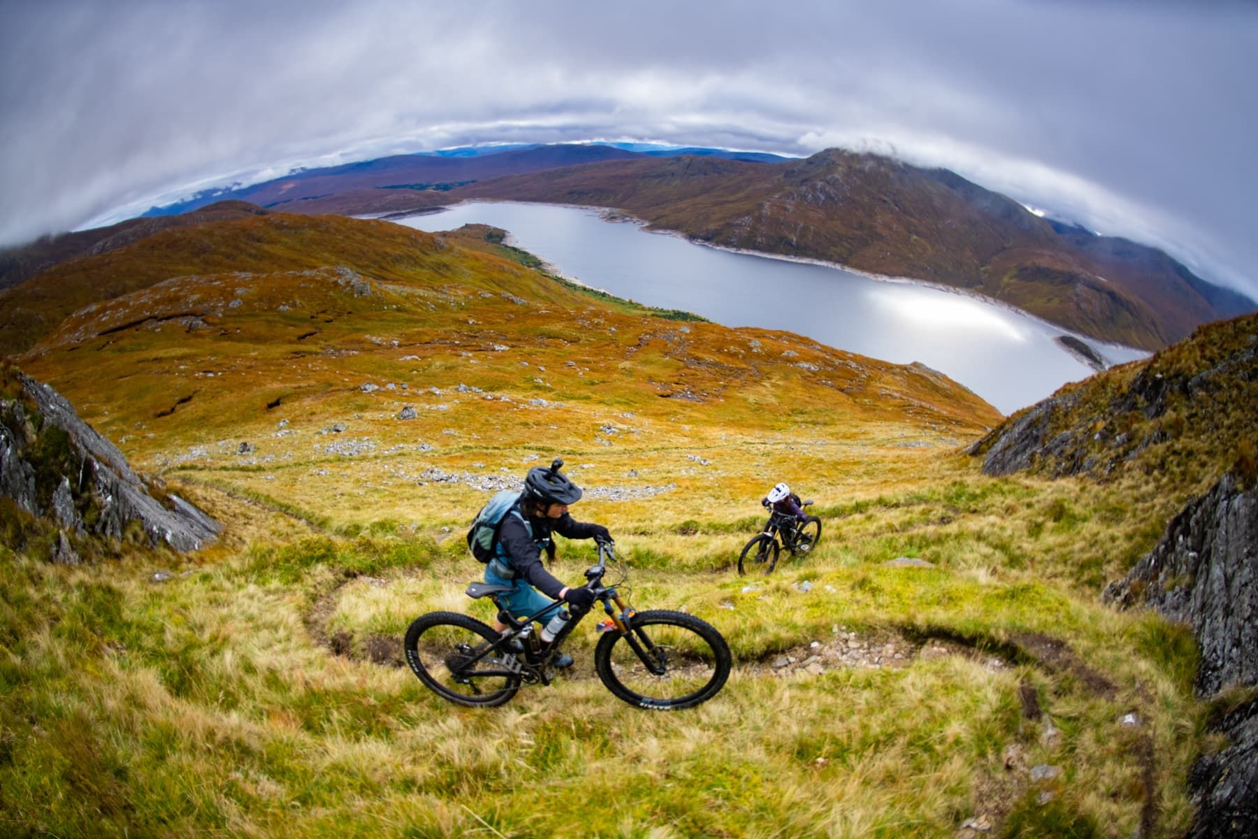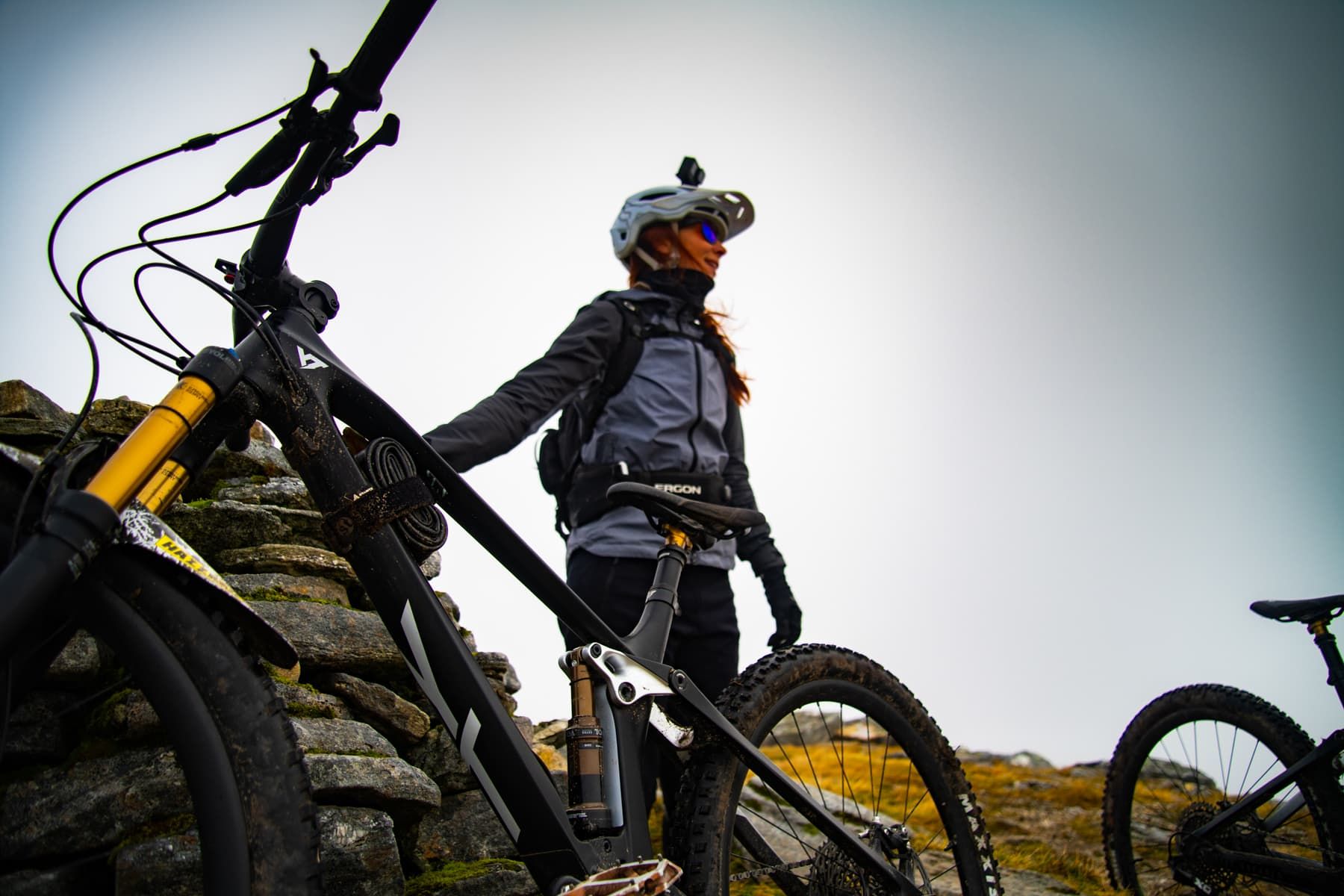 Getting down the top third of Gleouraich takes confidence and trust in the bike you’re riding. It’s a wild mix of steep loose rocks, wet grass and practically impossible technical sections that actually go if you dare to let off the brakes. Vicky and I have waves of determination, riding a section and getting to the end of it in disbelief that we successfully rode it and then rewarding ourselves by safely pushing over the next bit…