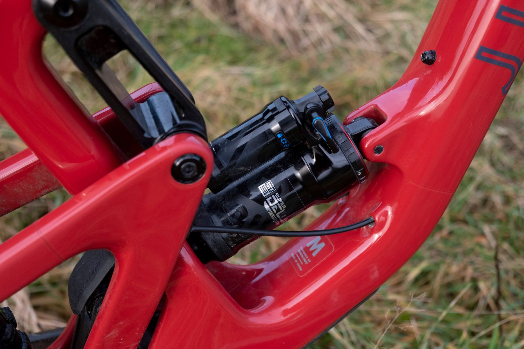 Another really noticeable part of the ride is how bottomless the suspension feels. When you’re skipping over small rocks and roots not really feeling any impact from them, you’d expect to really feel the bigger hits since your suspension is actively smoothing all that small stuff out. But you don’t – it takes the initial impact out and ramps up to towards the end to stop you bottoming out.
