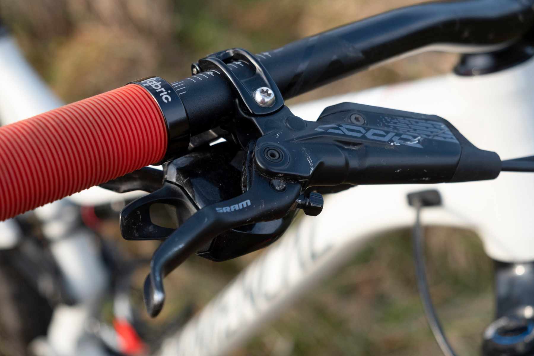 Where we deviate from the big S is in some of the finishing kit. The cockpit, including handlebar, stem and grips are all Commencal’s own Alpha-branded kit. It’s not the best looking, but it works and is comfortable, though I did swap to red Fabric grips for colour coordination and to match the stock Fabric saddle.
