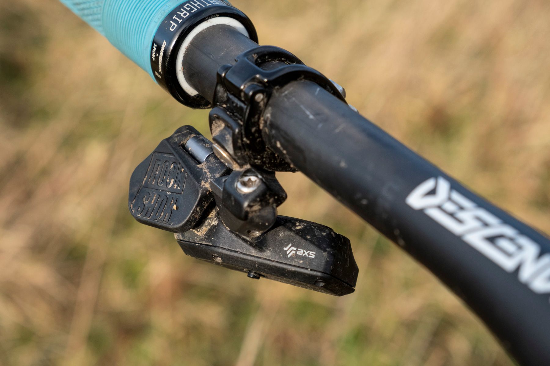 While we’re talking about the gears, they are very easy to get used to and forget that there’s not a cable connecting shifter with mech. You press a button and the gear shifts. It’s that simple. The AXS Reverb in particular is very impressive. Dropper movements are truly instant and it allows multiple fine adjustments a minute on contouring trails, rather than just ‘up’ and ‘down’. Battery life has been excellent, to the point that it’s not actually a worry. Charge up when you remember and you’ll be fine. And if it all goes wrong, you can swap dropper battery for the mech one to get you home with gears.