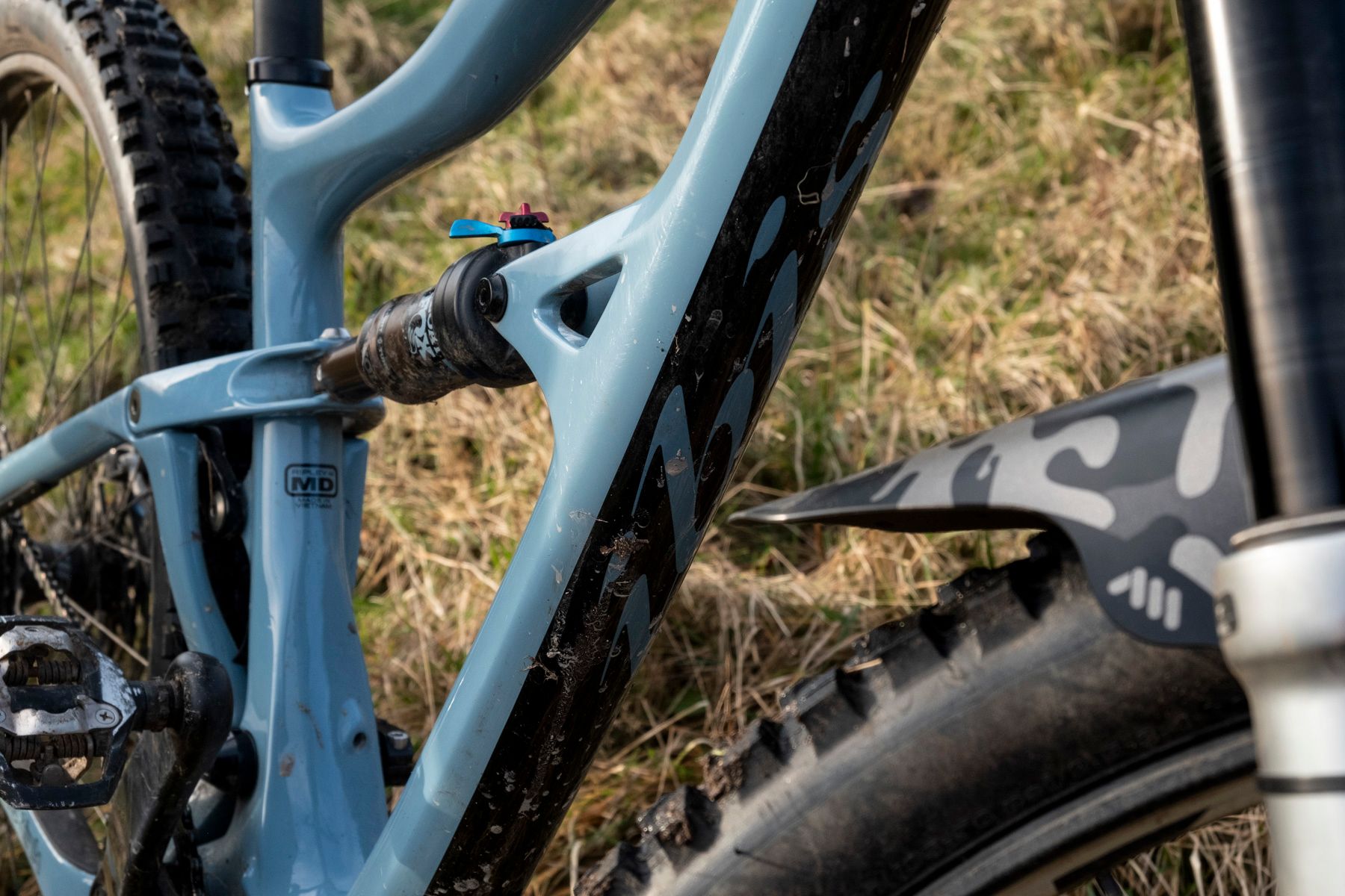 The new Ripley owes the long travel RipMo for many of its new design touches. Previous Ripleys had a clever pair of rotating cylinders that governed the rear axle path. Clever, but they didn’t allow room for longer dropper posts, so those pivots have been replaced by links that move the suspension in the same way. The diminutive frame height (the seat tube is barely 16in) gets its influence from the RipMo too. This allows luxuriously long dropper posts.