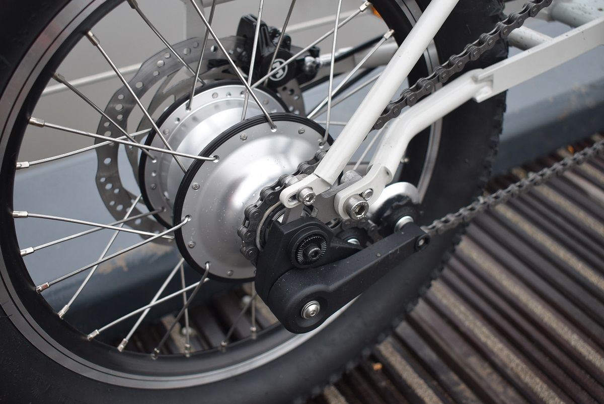 Starting with the standard Brompton design, Ben has applied no small degree of carefully considered design and logic to develop a whole range of custom alterations. Rather like a West Coast motorbike shop, the basic bike is only the start. Perhaps you hanker for a larger wheel size to help smooth out the bumps or you want disc brakes instead of the standard rim brakes? How about an internally geared hub or perhaps a custom rack? Electric motor you say? Yup. He offers that too. In a world of everything appearing to be made in China, it’s genuinely refreshing to have someone on your doorstep that offers upgrades that even the manufacturer doesn’t.