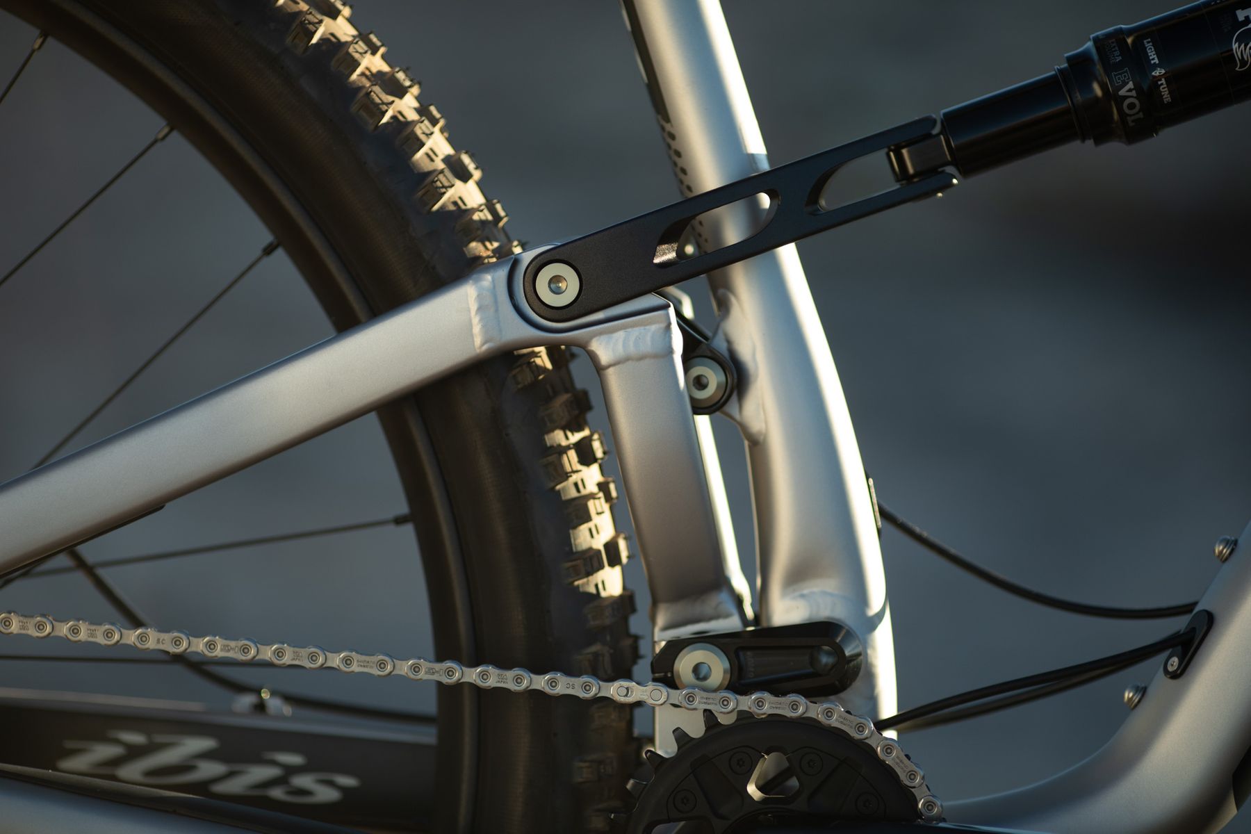 Just as on the Ripley frame, the upper link runs on bearings, while the lower DW link runs on Igus bushings, as they don’t rotate a great deal, so there’s no need for bearings here. The bushings are guaranteed for the life of the frame.