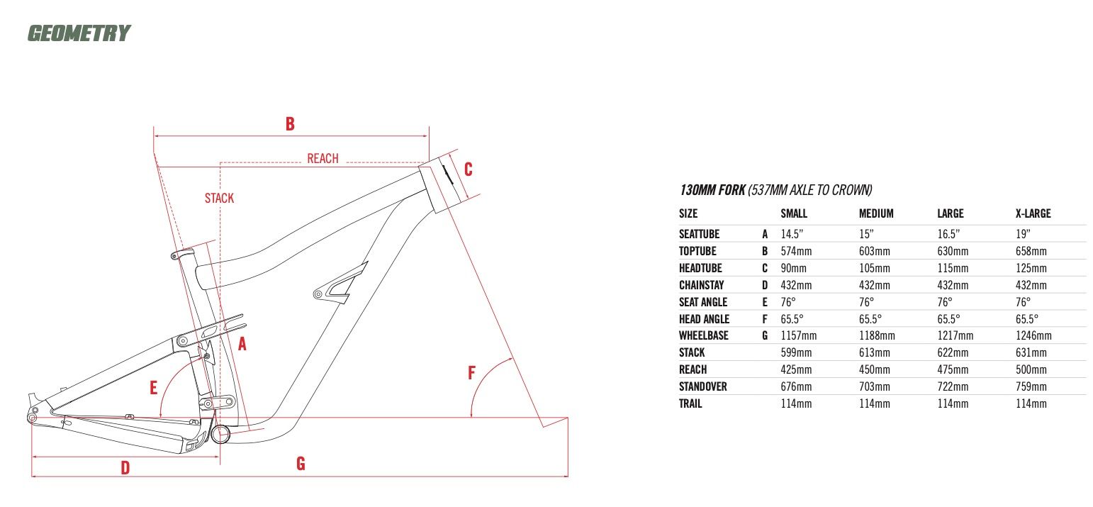 Lovely. Really like that ‘pond scum’ green colour with the yellow detailing. Interesting they’ve slacked-out the front end but left the travel at 130mm. Presumably that’d give an ever-so-slightly lower stack height than the existing carbon model, all other dimensions being equal. Maybe they’ve compensated elsewhere, as the geometry table says the stack is the same as the carbon version.