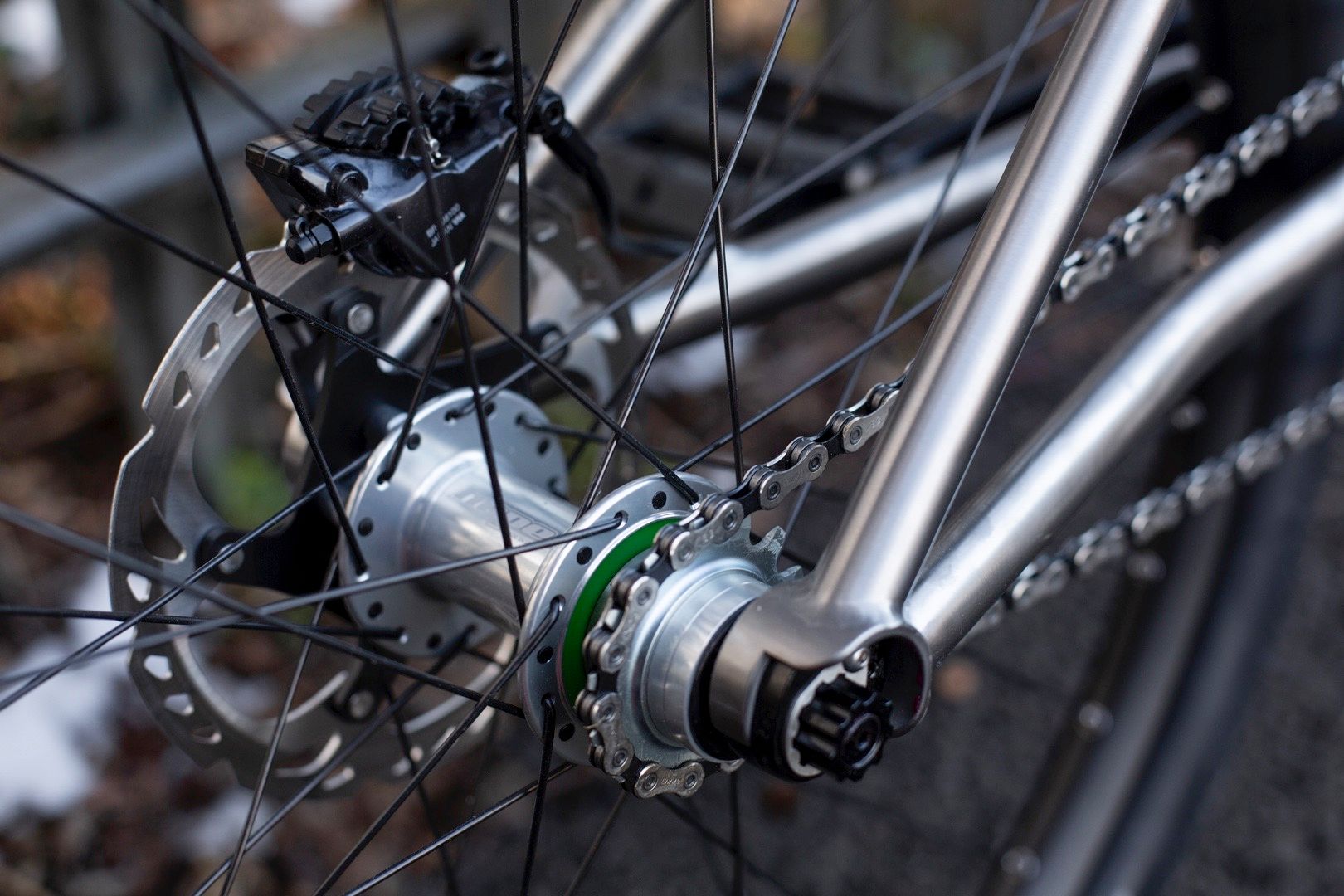 Perhaps the trickest part of the frame is the eccentric BB which ensures the chain is taut on the single-speed drivetrain. The EBB can also affect the BB height and chainstay length and his held in place with 2 M8 bolts for a non-slip fit.
