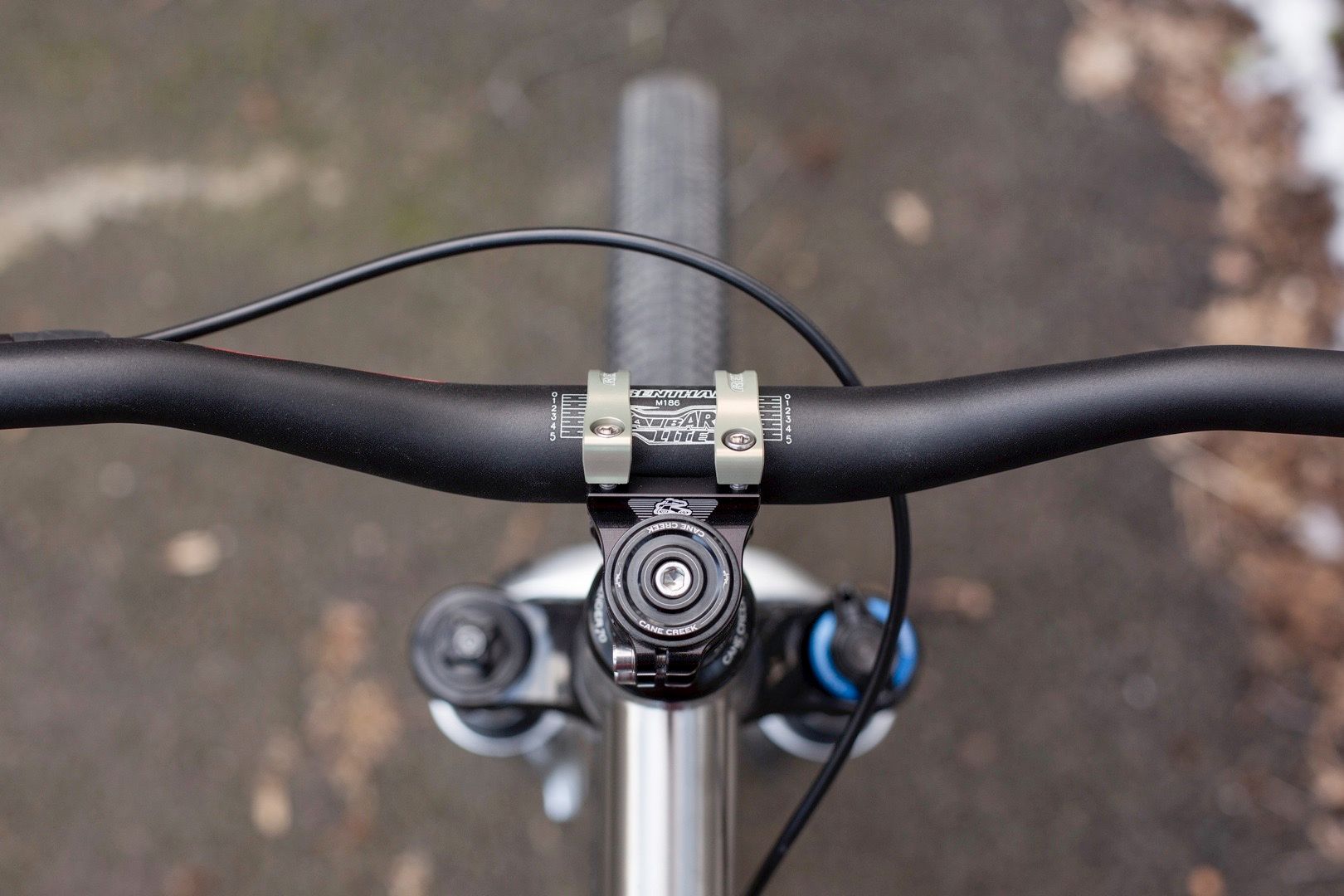 - Renthal Apex 40mm stem and Fatbar lite 40mm rise bars