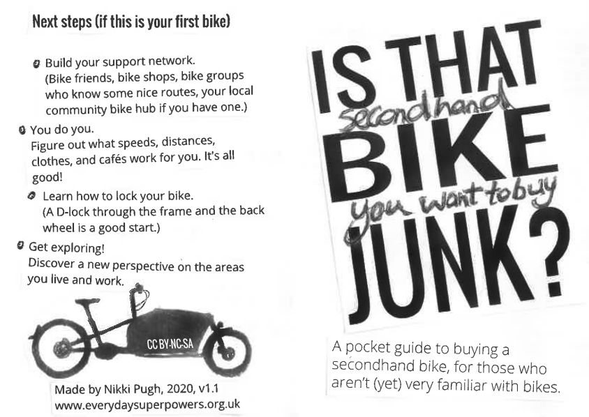 Super useful for anyone eying up a second hand bike, this should help anyone buy something that won’t break or cost more than it’s worth to fix. Head here to download this printable foldable booklet, and while you’re there you might want to check out the other Everyday Superpowers website, which is a UK based ‘network of transgender people, non binary people and allied women who use (or would like to use) cycles as part of our everyday doings.’