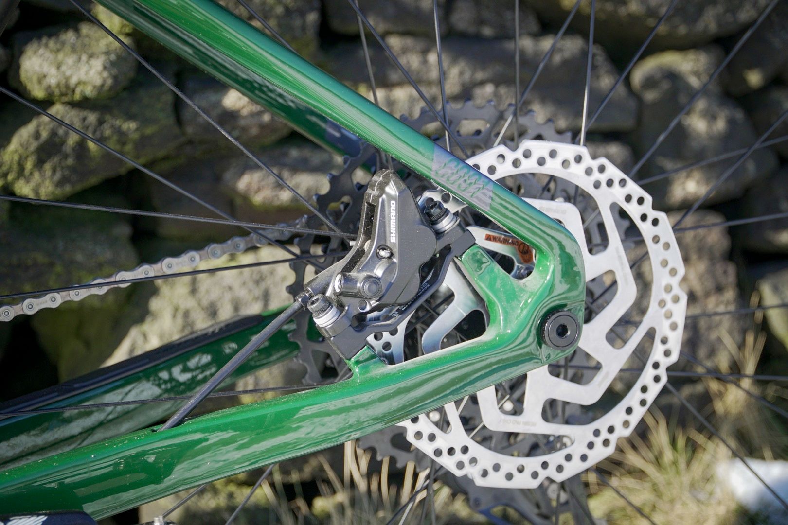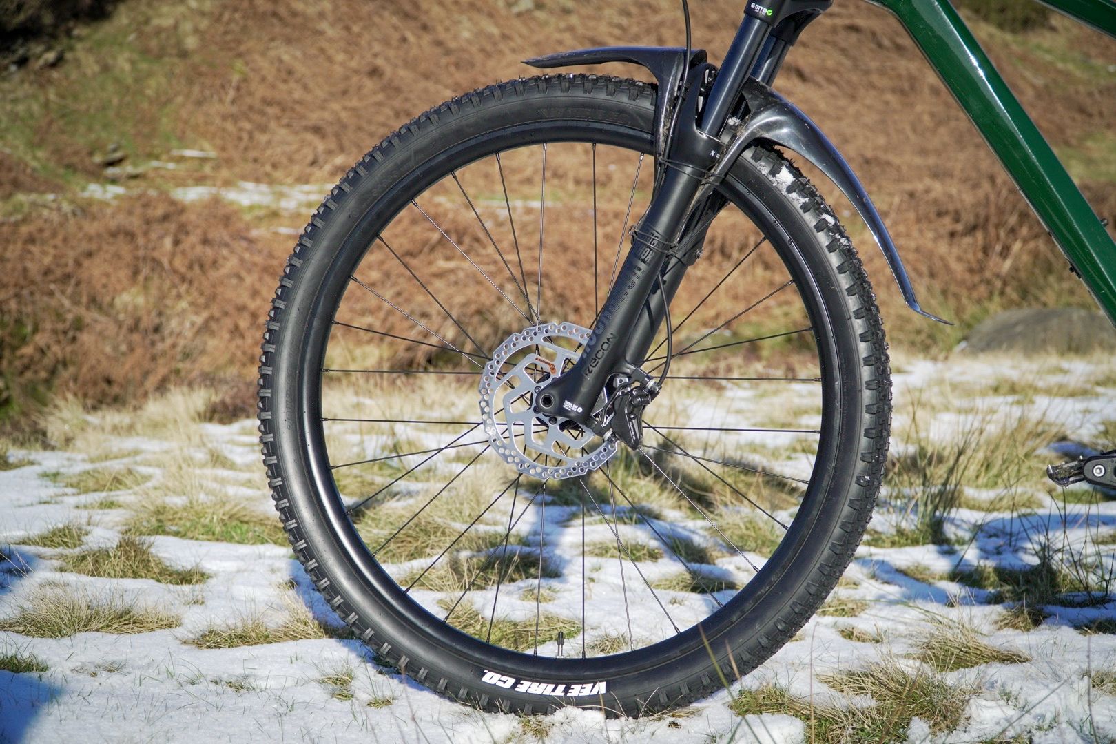 Wrapped around those alloy wheels are a pair of Vee Tire Co. Crown Gem tyres with MPC compound. They look like a great all-round trail tyre for hardpacked terrain and they’ve worked a treat on our frozen singletrack but I’ll switch them to something else when the rain begins to pour.