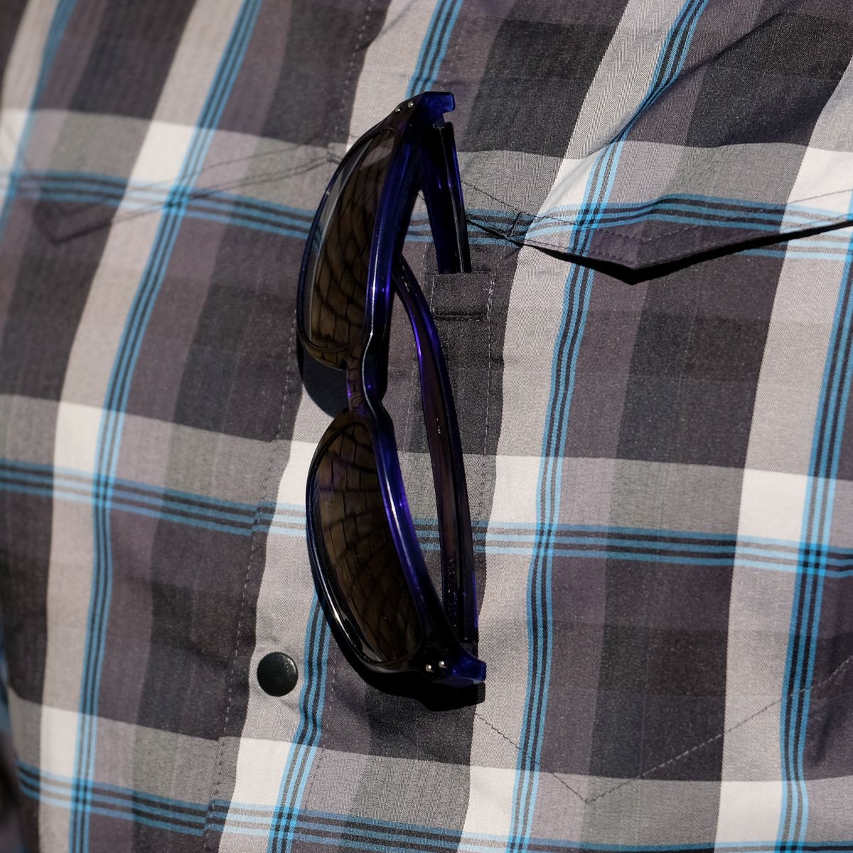 The “New West” short sleeve shirt has pit vents, a sunglass cleaner, tech fabric, and a secret zip rear pocket. The “Go Long” long sleeve shirt has the same, but drops the rear zip pocket and gains a sunglass chute on the chest.