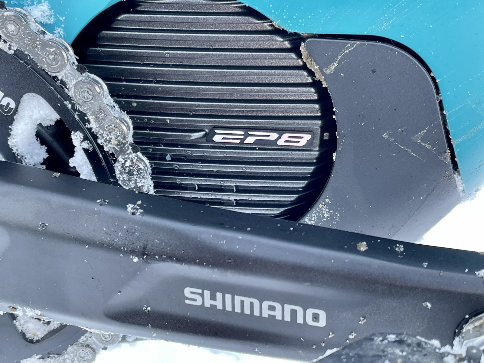 Not quite the top of the line model, the CF 8 is made of carbon and comes with Fox 36 150mm fork (Grip damper) and the latest Shimano EP8 motor. There’s a 630wh battery on board and even a USB C port on the top tube so you can keep up with the socials while charging your mobile (or lights, more sensibly).