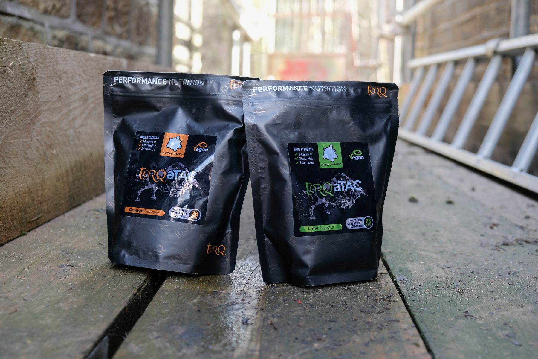 TORQ aTAC is a 28-dose powdered drink mix to be taken at the first signs of fever, cold or flu infection that can also be used during heavy training loads or during ‘international travel’, whatever that is. Each serve contains 1000mg Vitamin C, 1000mg Glutamine and 500mg Echinacea. Amanda is constantly overtraining, and she has a compromised immune system, so she’s going to treat this as a supplement and she how she gets on!