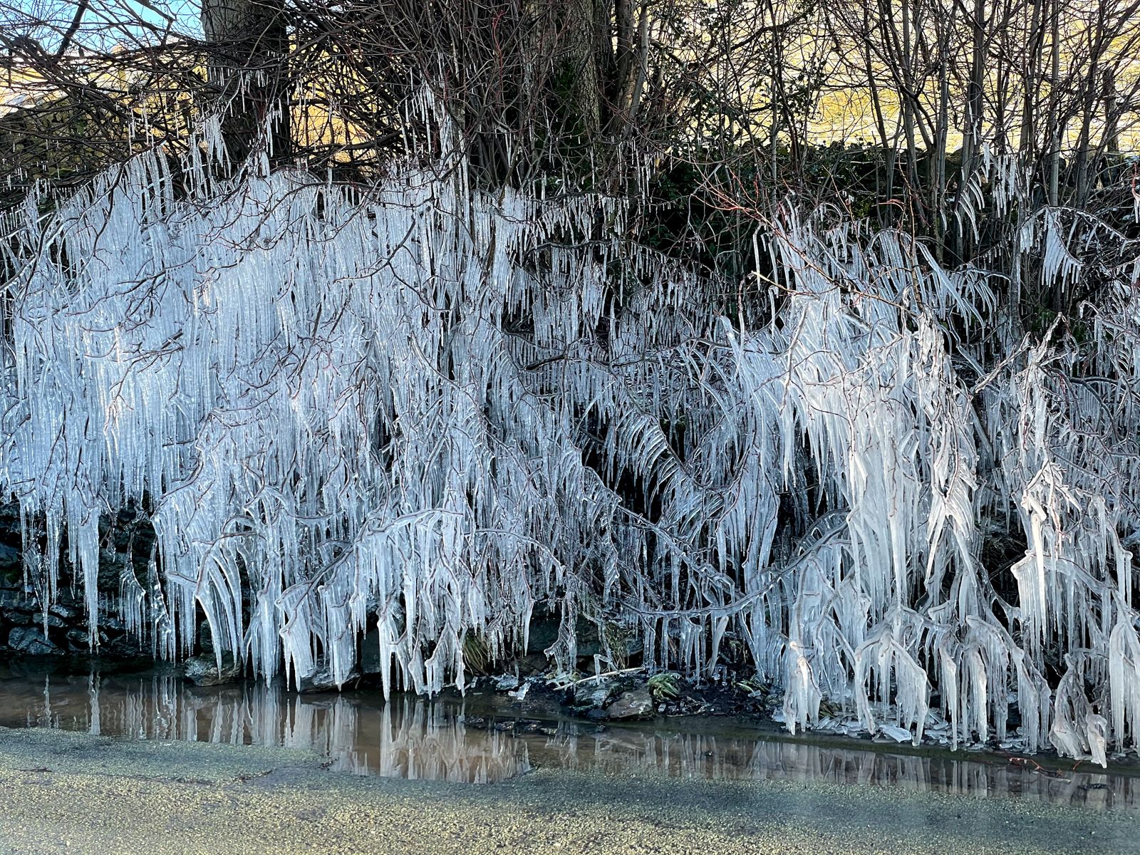 Opening with the obvious – it’s really cold. Instead of grumbling about this relentless deep freeze we’re experiencing, I’d like to show you this incredible ice sculpture created at the top of the hill out of Hebden Bridge. At first I thought it was field run off, but it’s actually the product of a puddle repeatedly splashing the branches.