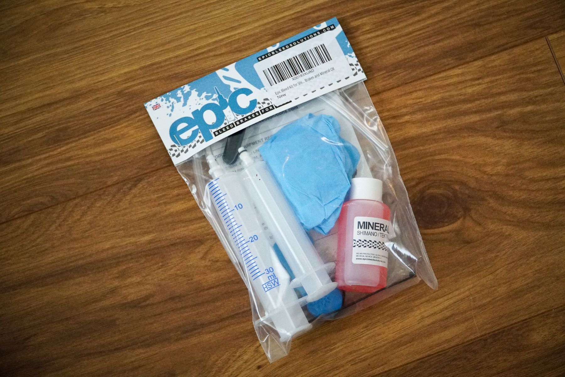 You may have noticed that Andi has had a couple of Indonesian bikes delivered this month which has meant swapping the brake hoses around. This can usually be done without a bleed but these brakes needed a bit of a top-up anyway so he picked up this Shimano brake bleed kit. In actual fact, Andi purchased this from Epic Bleed Solutions via their Amazon web store, but because he was accused of bringing on the demise of the LBS we’ve linked directly to the EBS website instead of their own Amazon store. The kit comes with a couple of syringes, gloves, oil and all the necessary accessories to get your brakes biting as they should.