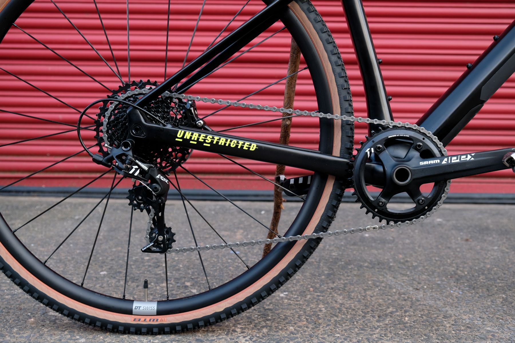 The BMC URS features a lightweight suspension system, adding 10mm of travel and DT Swiss C1850 Spline wheels running 40mm WTB Raddler tyres.