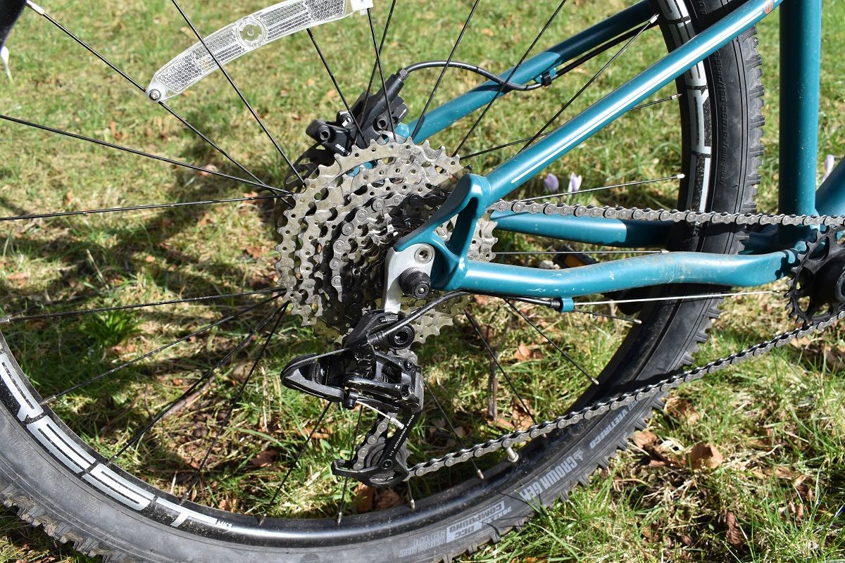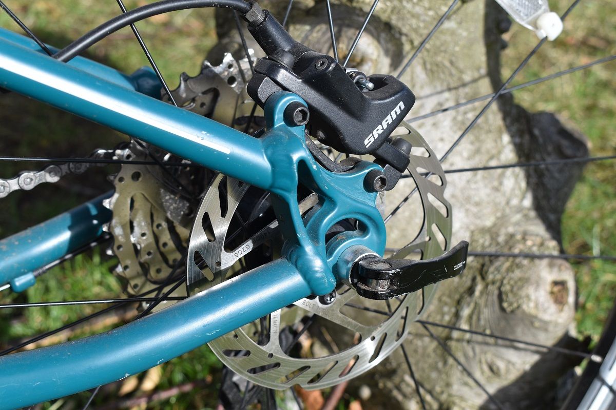The IS disc mount might appear a little old fashioned in this age of post mount discs but it is arguably better suited to smaller frame sizes where there is less room to fit a disc calliper. Give me ease of adjustment over streamlined looks every day of the week. As you would expect, the rear mech hanger is replaceable while there is space to fit a water bottle. The lack of mounts for a mudguard is a surprising omission given that other bikes in the range feature them. There is a lot to be said for being able to use proper mudguards over clip on ones.