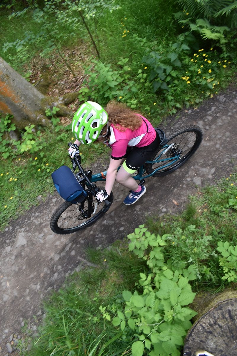There is a rocky climb near to Sanny HQ called Rosie’s Road. In the wet, the combination of mud, loose rock and exposed bedrock make for a tough climb to clean. Despite having never ridden it before, Julia decided to have a crack at it on a particularly wet day. To my slack jawed amazement, she went for it and managed to get to the top under her own steam with only a couple of dabs. It was a definite proud Dad moment for me! I’ve seen plenty of experienced riders get off and push in such conditions which made me all the more impressed.