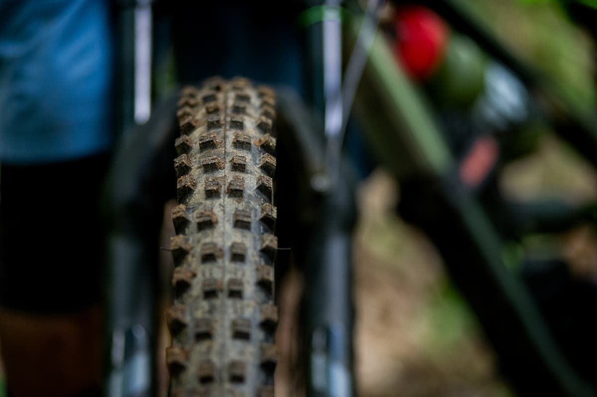 Based on feedback from Maxxis’ World Cup DH and Enduro World Series-winning riders, the second generation Shorty offers a revised knob design. The “double-wide” single center knob is now split into two knobs, and additional support was added to the cornering knobs. Other changes include a narrower 2.40” width for better mud clearance and reduced weight. Revised siping on the knobs offer better braking and cornering traction and raised ridges on the casing help shed sticky mud.