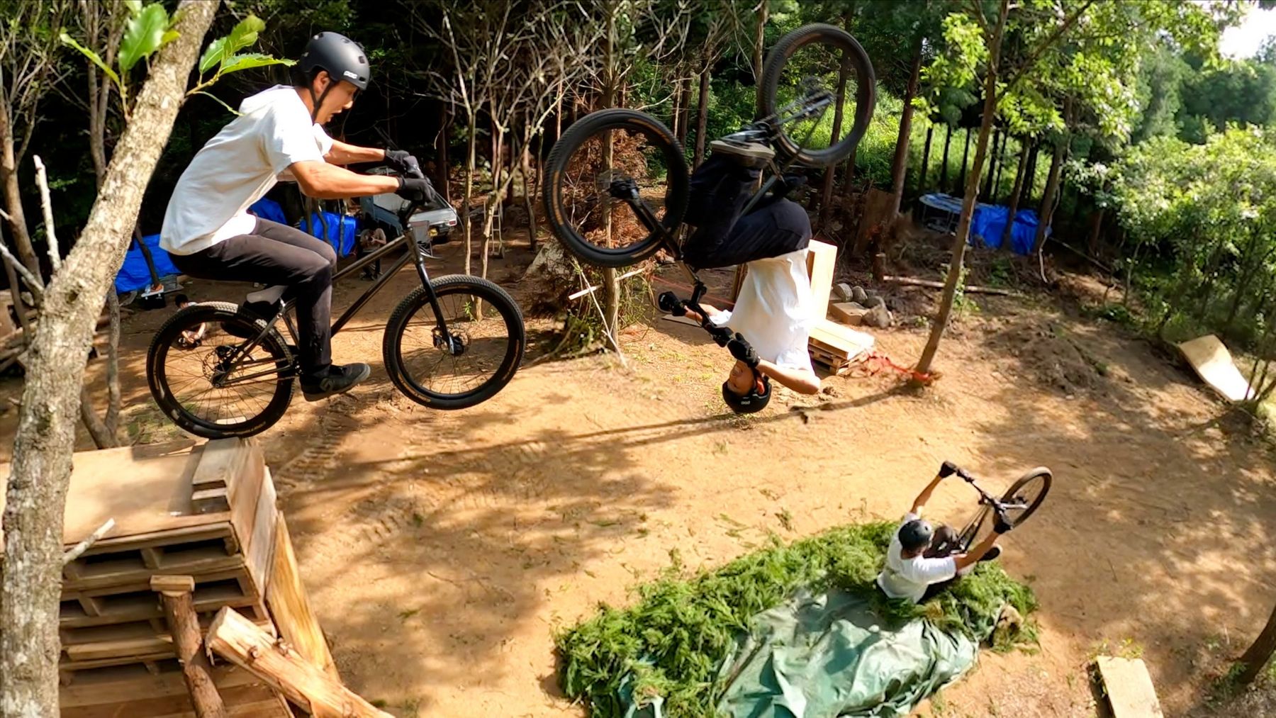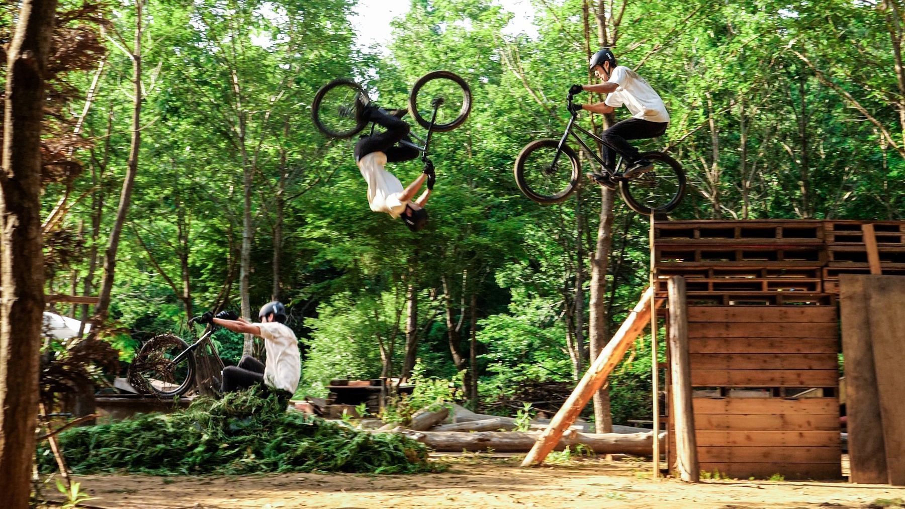 It was filmed by two camera men and one photographer. So many friends helped with the setup and the building for the tricks. Daisuke, the first videographer is a mountain bike filmmaker and we also used to ride together. The second videographer, Jidai, is a young travel filmmaker. He is currently living the van-life around Japan. Naoki is the photographer who always works with me. I want to say huge thanks to everyone!