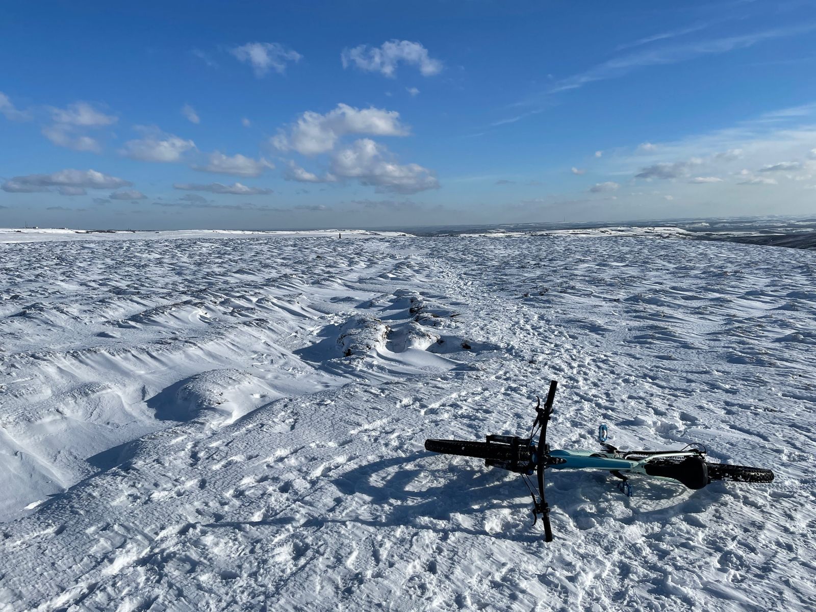 I suspect there is someone, maybe you, thinking this all sounds a little dangerous, and isn’t there a time to just stay home by the fire. But I’d argue that there’s too much delight to be had in the snowy uplands to ignore it, and on an eMTB you can more easily add a little extra safety to your ride. I’ve been out in the same level of body armour as I would if I were going for an uplift day at the bike park – on an eMTB you barely notice it. Over the top of all that padding, I’ve added substantial snow boots, waterproof trousers and upper body layers of merino, fleece and Goretex. It’s like riding in my own personal tent, wrapped up warm with the whipping winds kept at bay. A pack on my back with emergency supplies for if the worst does happen is no encumbrance. I’d be hard pushed to be so prepared on a standard bike, or even a fat bike, and retain any element of joy.