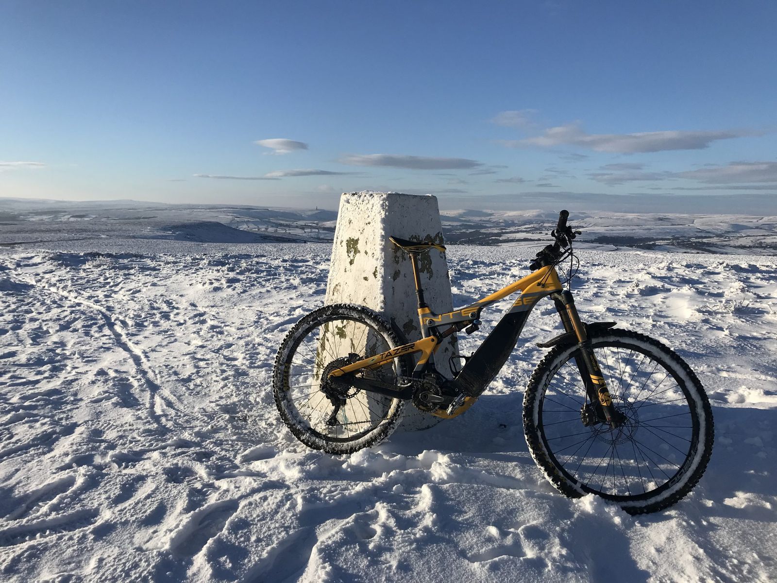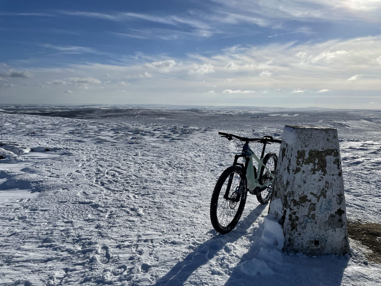The single most joy giving reason for buying an eMTB is, in my view, snow. Riding an eMTB in the snow is a slithery bar wrestling exercise in giggling. The e-assist means you can keep pedalling and making progress through the snow without constant dismounting and pushing. This means you can get further, which means you can get beyond the slushy trampled routes where everyone else has been and out into a crisp white arctic tundra. Smooth drifted waves of snow sculpted by the wind, frosted tufts of grass and extraordinary icicles will reveal themselves as you climb higher into the colder air where weather is left to do its thing away from gritters and snow shovels.
