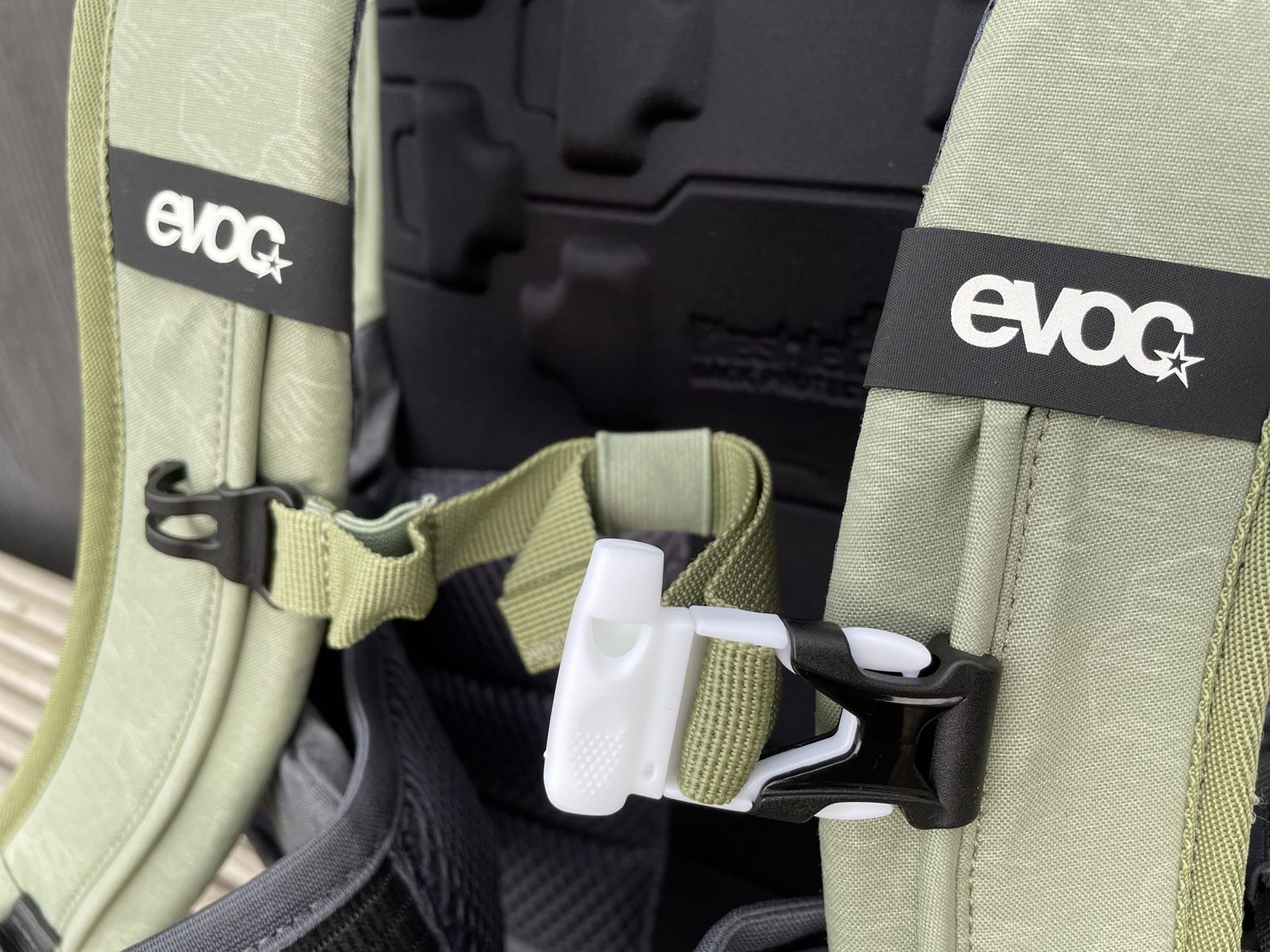 This is the first time that Evoc has used the Brace Link in a protector backpack. This feature enables the rider to adapt the padded shoulder straps to their individual shoulder width via variable connector elements. The backpack has no seams on the shoulder straps in the neck and upper shoulder area in order to prevent friction or pressure. It’s also Evoc’s first backpack to use weight-saving, pre-formed 3D pads on the back, which promise to improve comfort and air circulation by creating space between the backpack and the riders’ back.