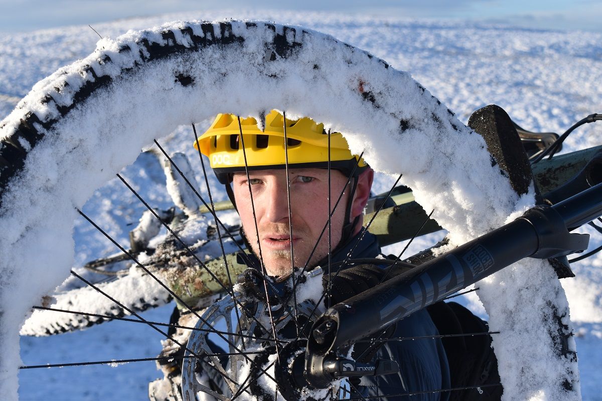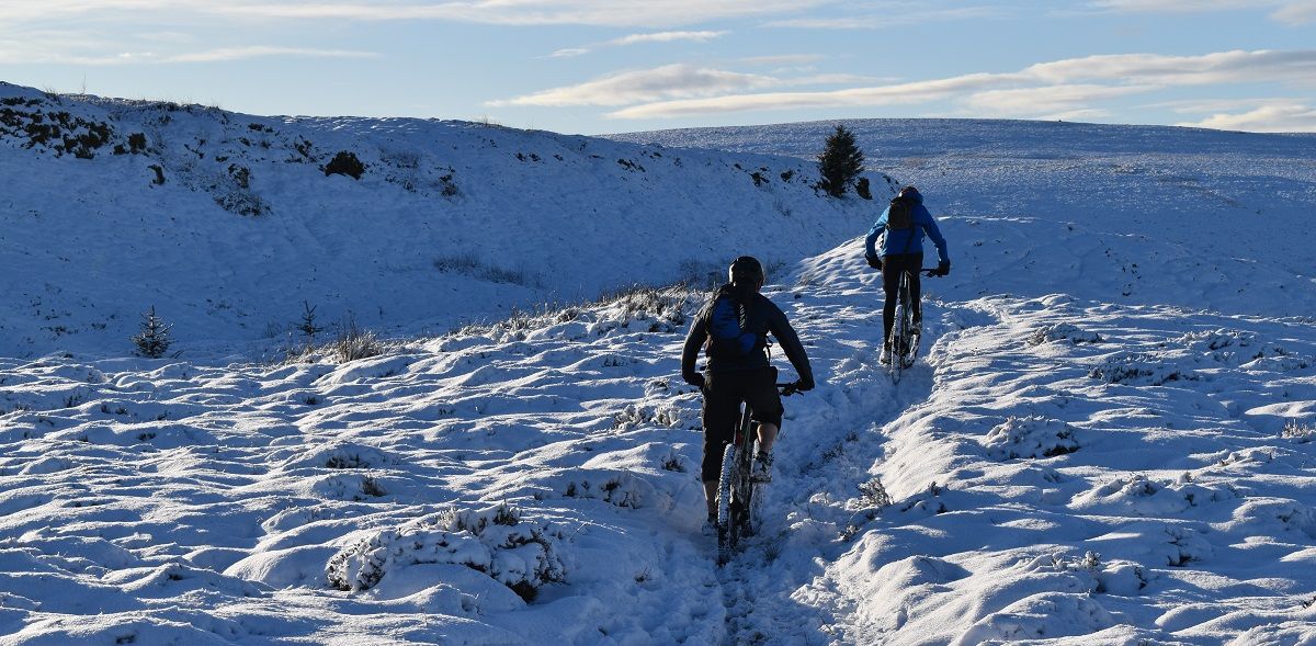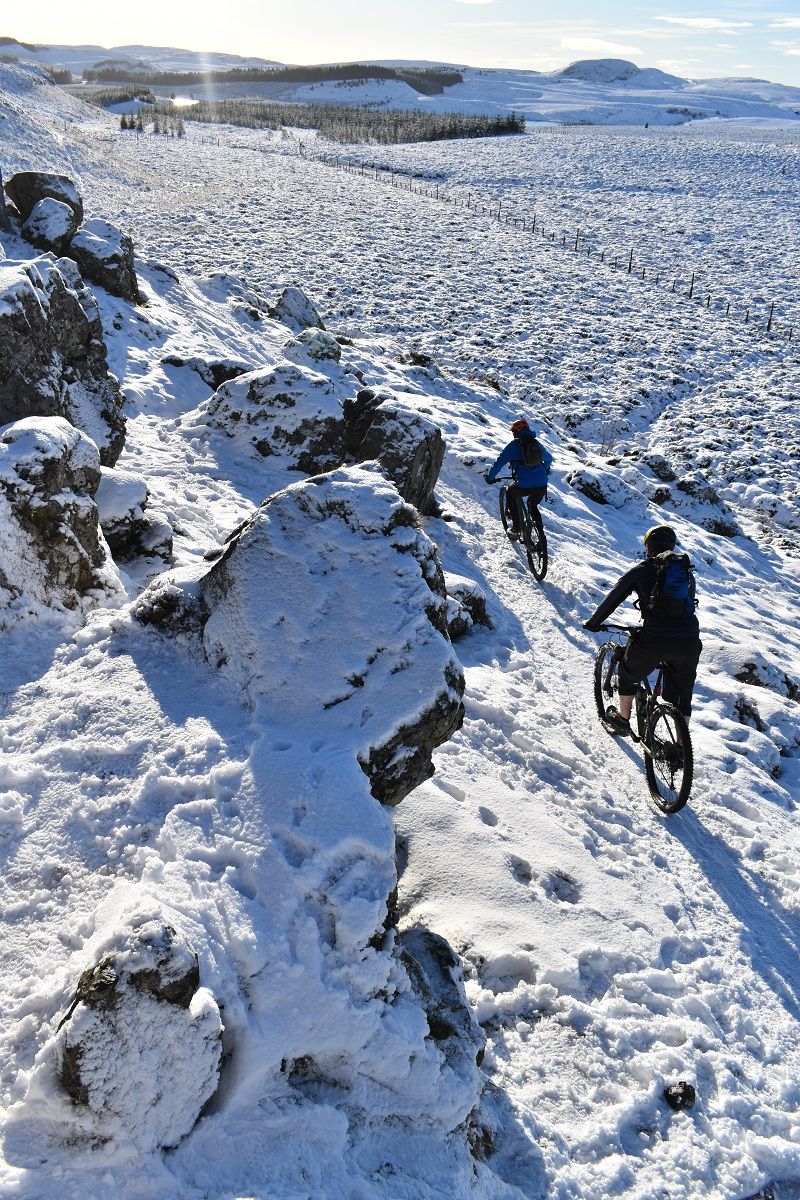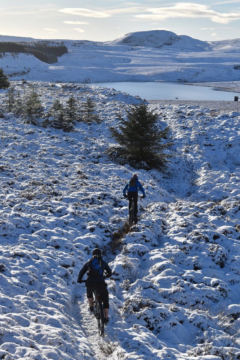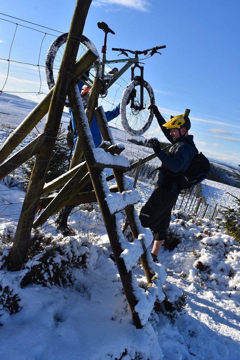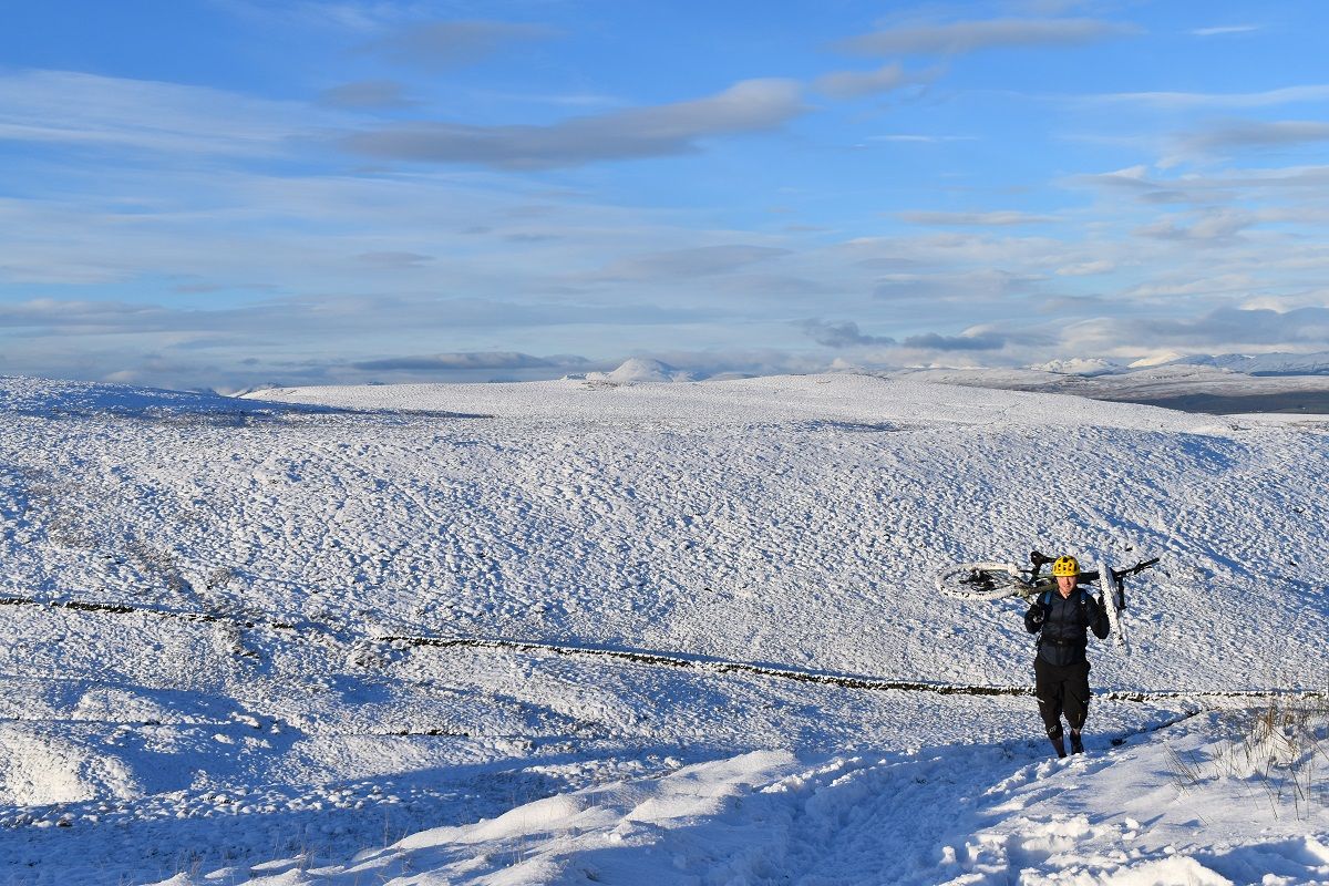 Thankfully, the start of the off road climb proper soon homed into view and we could all get back to enjoying the ride. With a healthy covering of snow, I cut a smug figure as I headed up the initial steep climb. My choice of ice tyres had been a wise one and helped me find traction as Rory and Dave were reduced to hike a bike action.