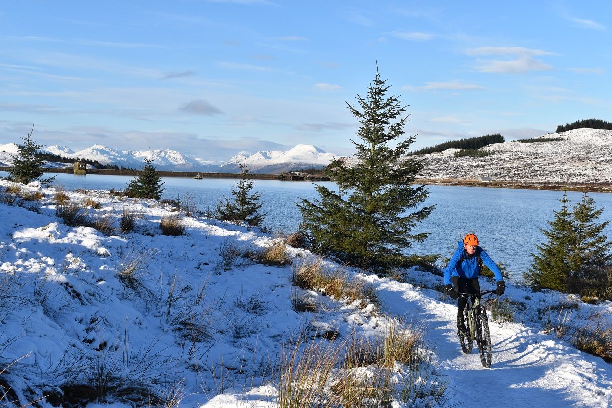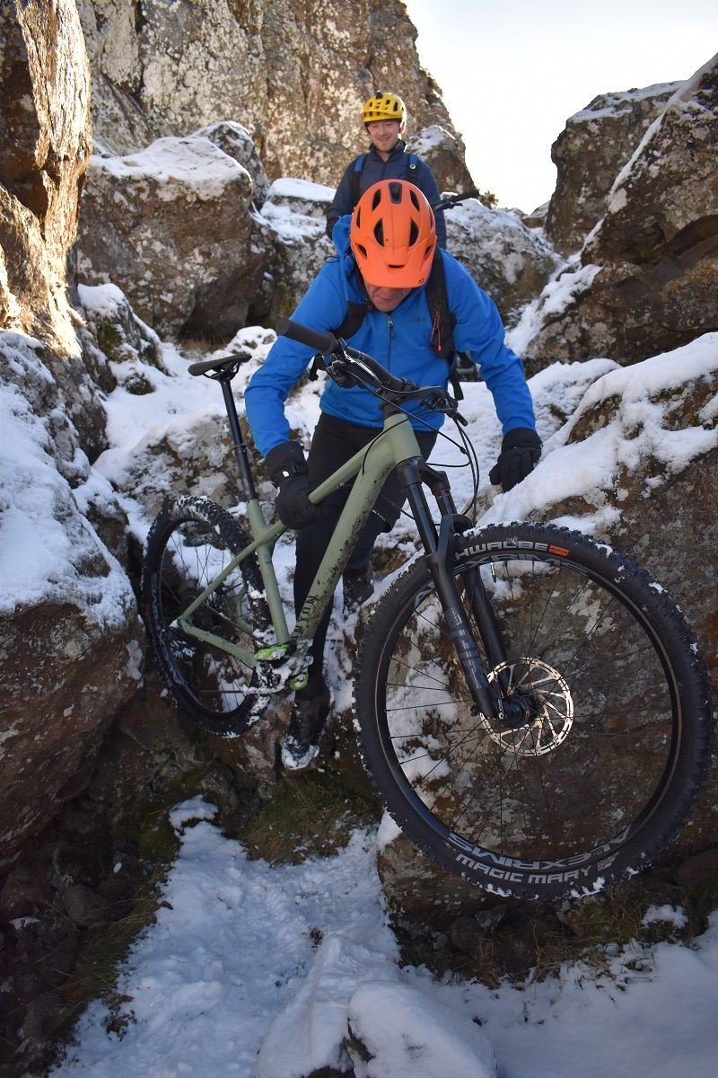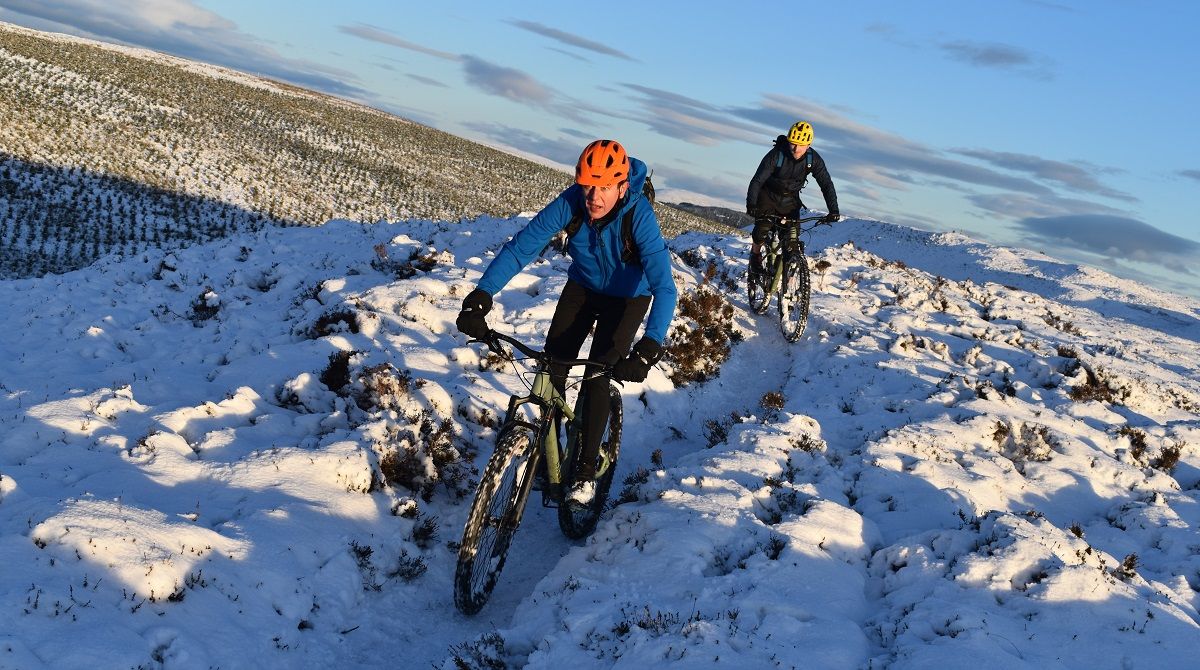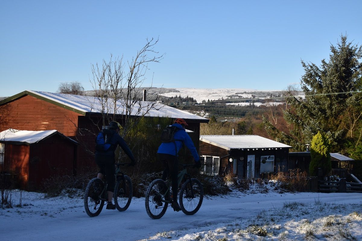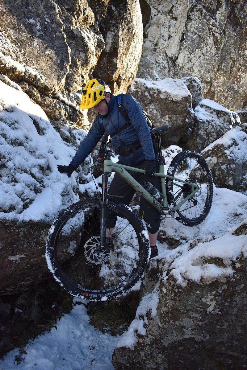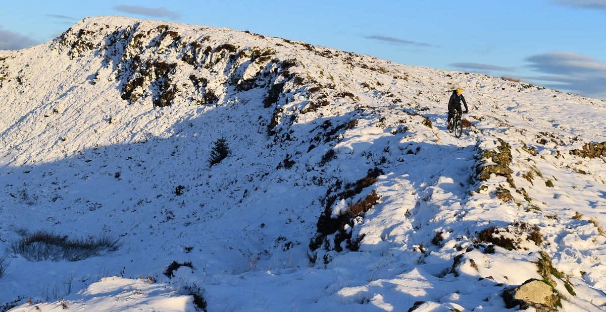 Thankfully, the start of the off road climb proper soon homed into view and we could all get back to enjoying the ride. With a healthy covering of snow, I cut a smug figure as I headed up the initial steep climb. My choice of ice tyres had been a wise one and helped me find traction as Rory and Dave were reduced to hike a bike action.
