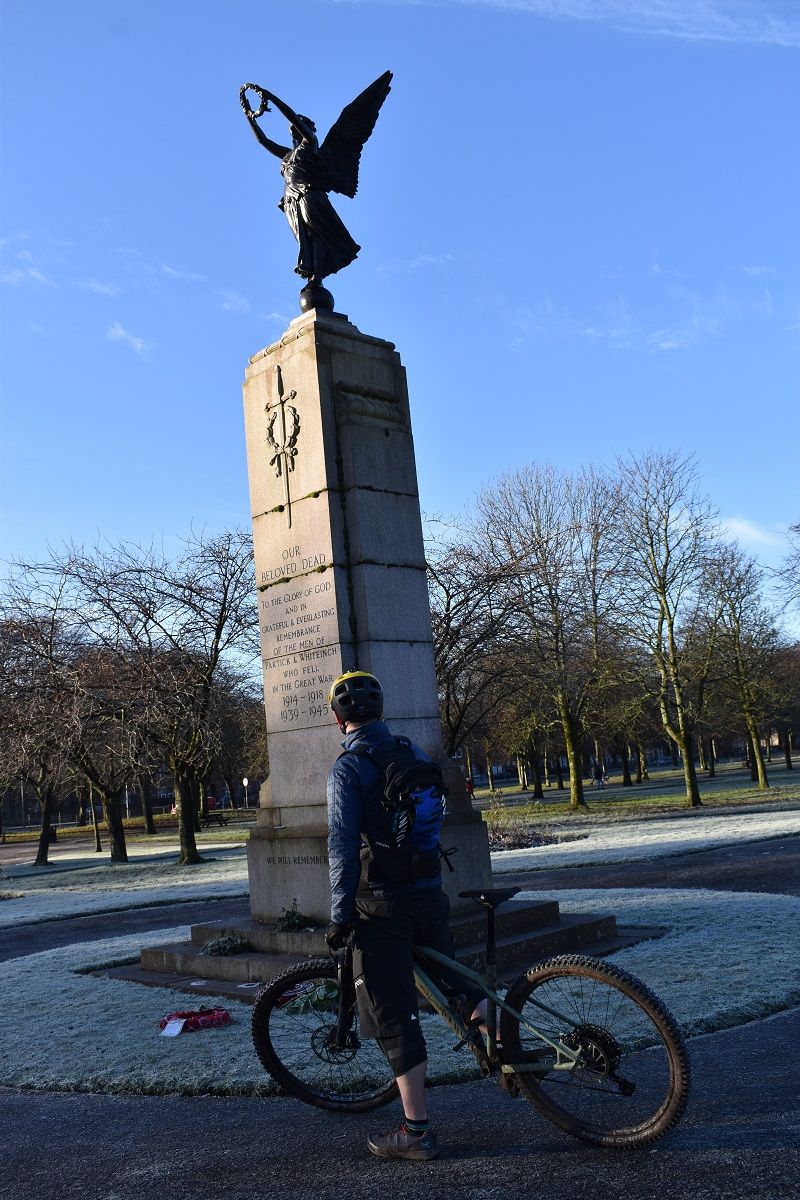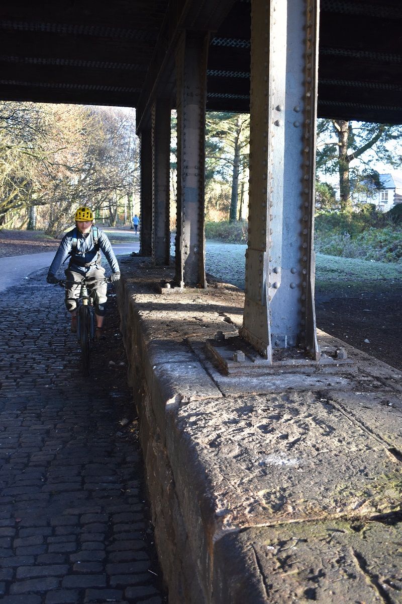 Darting through the urban woodland of Dawsholm Park and Cairnhill Woods, the customary squelch of tyre on slop was instead replaced by the delicate crunch of tyre on boilerplate trail and hard frozen leaves. One touch of the latter and they practically turned to a sparkling dust in front of our eyes. After what felt like a long autumn of rain, it felt good to be out on a proper winter’s day.