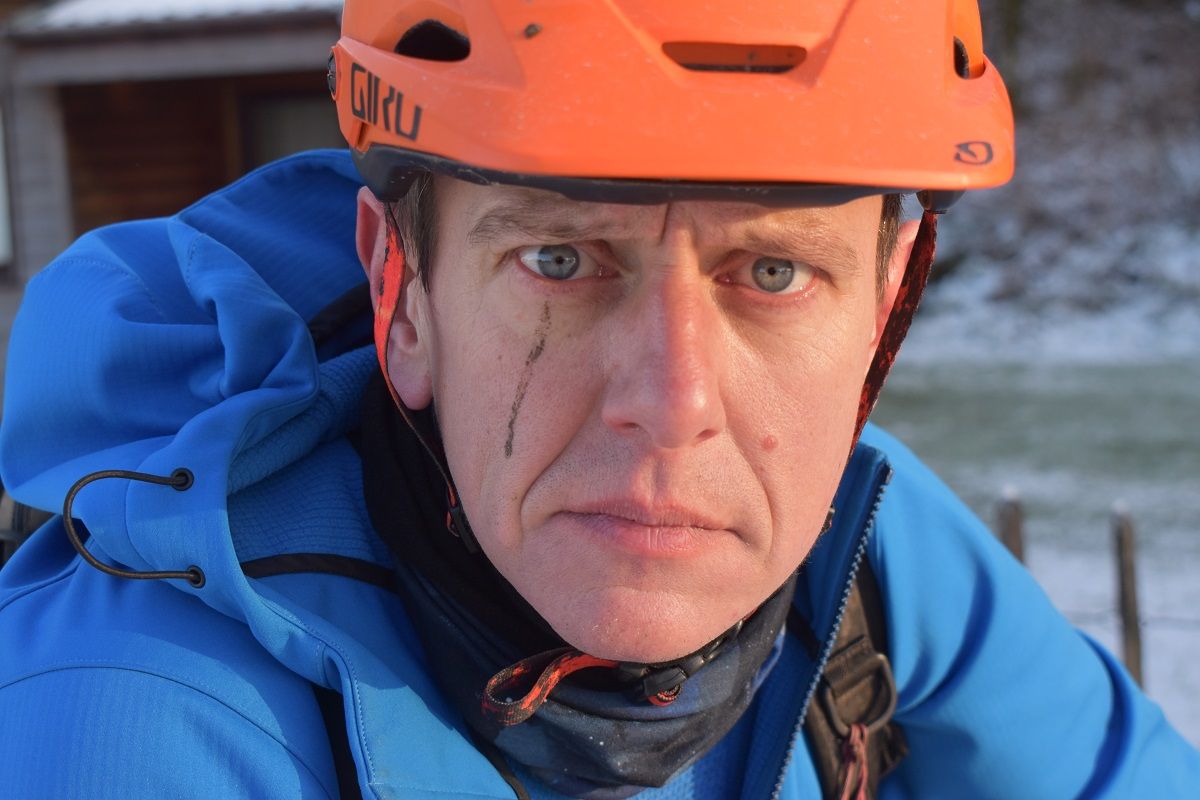 Stopping to take some shots, I found myself sliding inexorably downward. What had felt grippy under tyre had disguised a thin patina of ice, leading to an interesting series of shots as Rory’s head and then shoulders gradually disappeared out of shot. Oh well, no reward without risk eh?