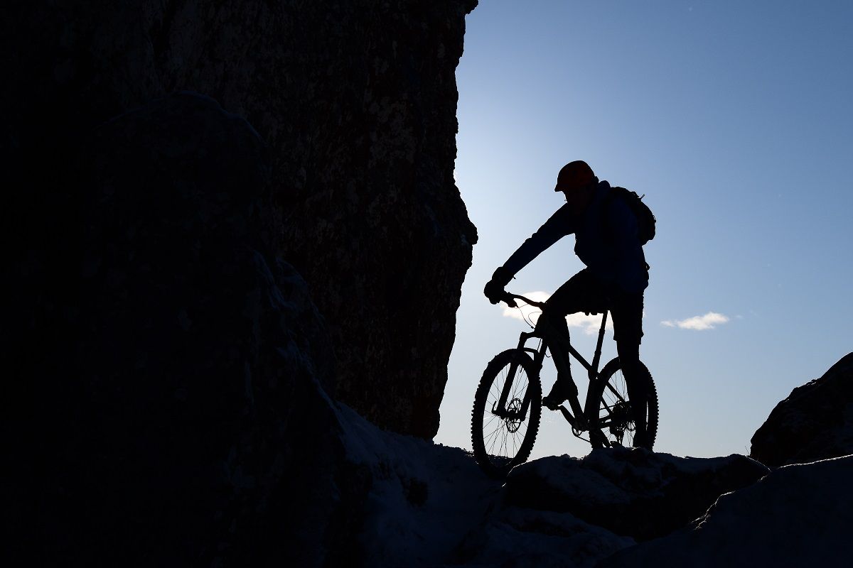 However, all that counted for nought as the deep blanket of snow called for trail breaking. At times, it felt more like we were in an episode of “Walks with my bike” but none of us were complaining. The feeling of solitude was intoxicating, interrupted only by Dave’s off key singing / murderous reworking of an old Janis Joplin staple. “Oh Lord, won’t you give me, progressive geome-treeeeeee!” I made a mental note to have a word with his good lady Linda when we got back that she needed to limit his screen time.