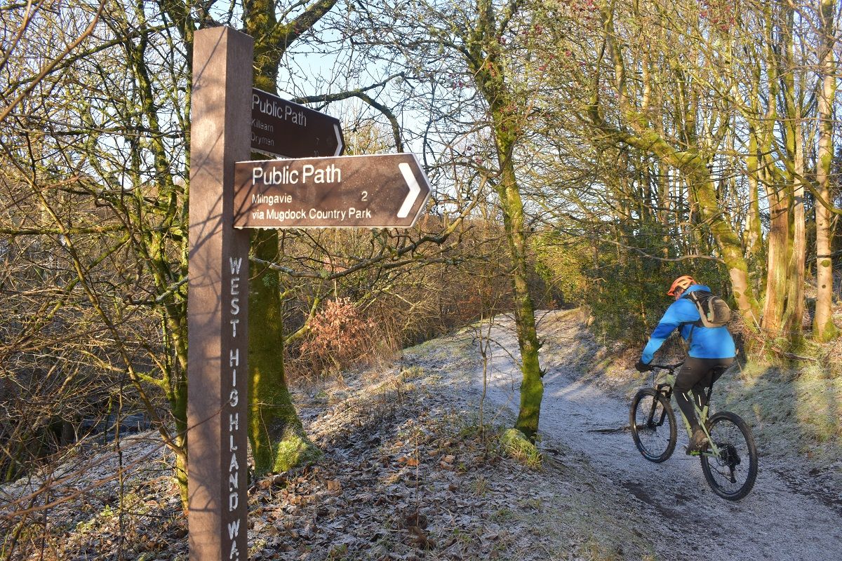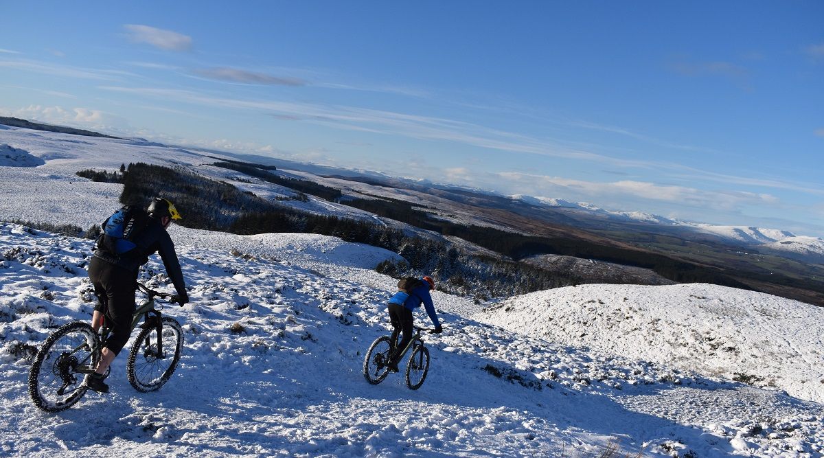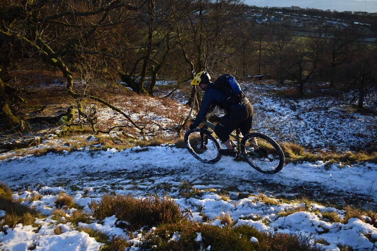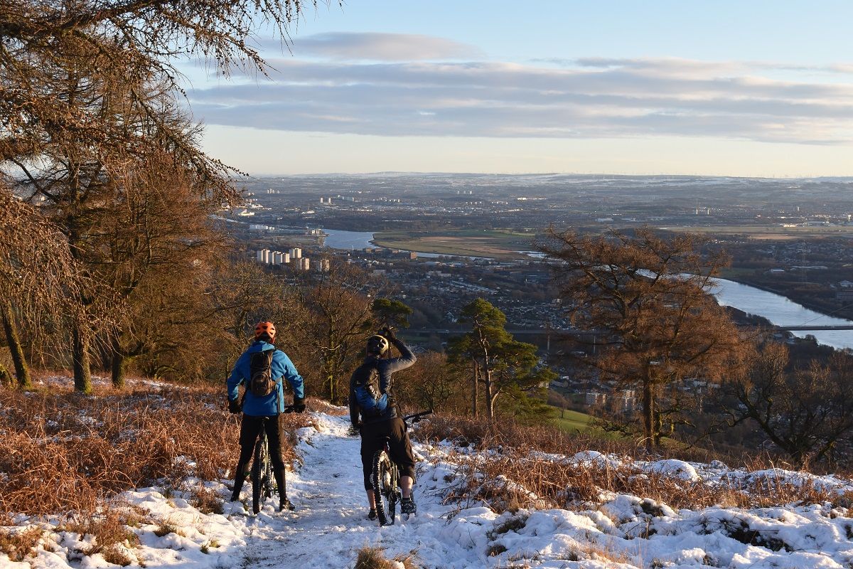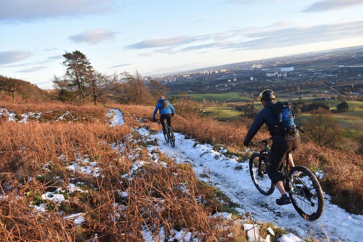 Trees, chutes, drops, rock steps – all passed in a flurry of smiles. With the vista of the Clyde and Glasgow in front of us with the distant peaks of Lanarkshire and Ayrshire beyond, it felt like we had come full circle. All that remained was a gentle sub-zero spin along the banks of the canal to get us back to base. As local adventures go, it had proven to be an absolute winner.