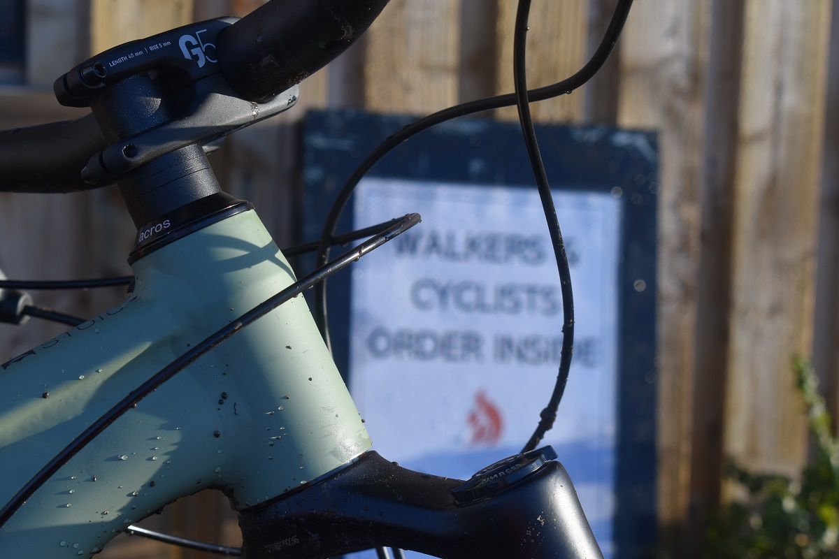 Dropping over the far side of the dense woodland within which the huts nestle, we skirted around the site of the dilapidated old coach house that is The Carbeth Inn. Once a regular mid-ride stopping off point, it closed its doors for the last time several years ago. However, with apologies to followers of certain Abrahamic religions, like some kind of pork tinged mirage, out of its shadow came the glorious sight of a drive-thru coffee hut.