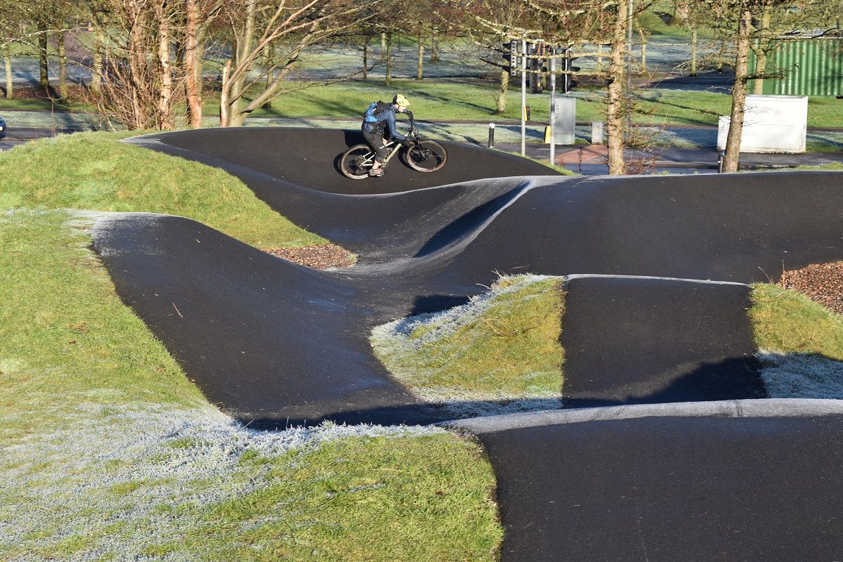 Glad that none of the resident knuckle draggers were in evidence, we took great delight in whizzing round the pump track. For Rory, this was his first time on one and he quickly got into the swing of things. Watching me, he was able to succinctly explain what I was doing and copy it. Clearly, those commentator skills are well honed! Rising and falling, leg and arm pumping, forward, back and repeat – there is something irresistible about playing on a pump track.