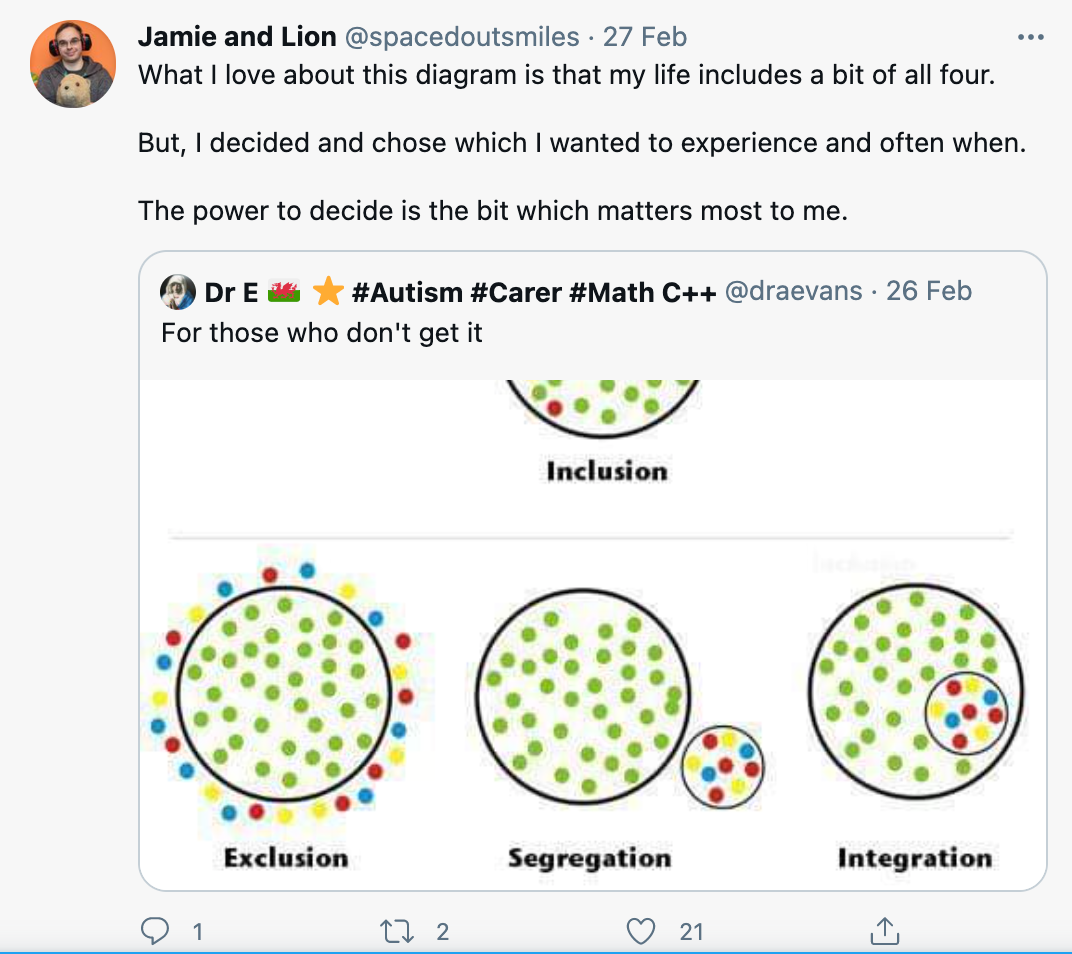 Jamie has a few Twitter accounts for different purposes, but it’s his blog that I enjoy the most. I admire anyone that lives openly and honestly, and Jamie does just that, writing even on topics that are very personal. I find the insight he gives into navigating the world both useful and inspiring. He works with who he is, the different aspects of his neurodiversity, and engineers solutions to problems. I like how he keeps his focus on the goals of autonomy and productivity, and continuously keeps a positive perspective of ‘how can I do this’, or ‘how can I do this better’. He shares what he finds in the hope of helping others, but without telling them ‘this is how you should do it’. Staying focussed on goals, striving to improve, and to help others – these are all things I admire and Jamie’s writing reminds me to try and do the same.