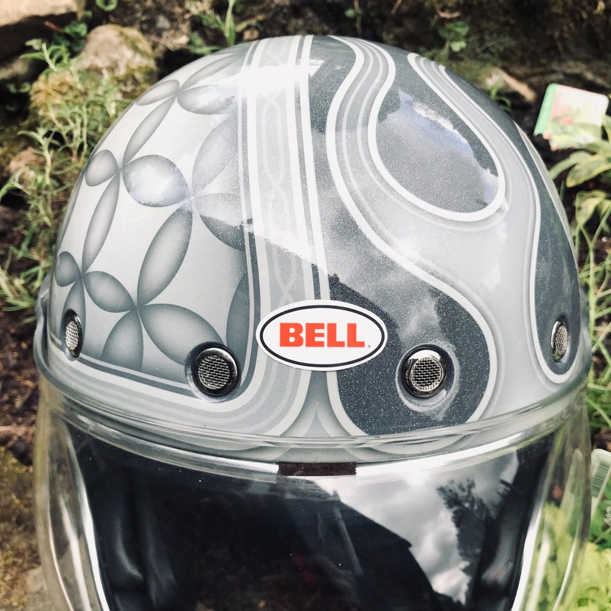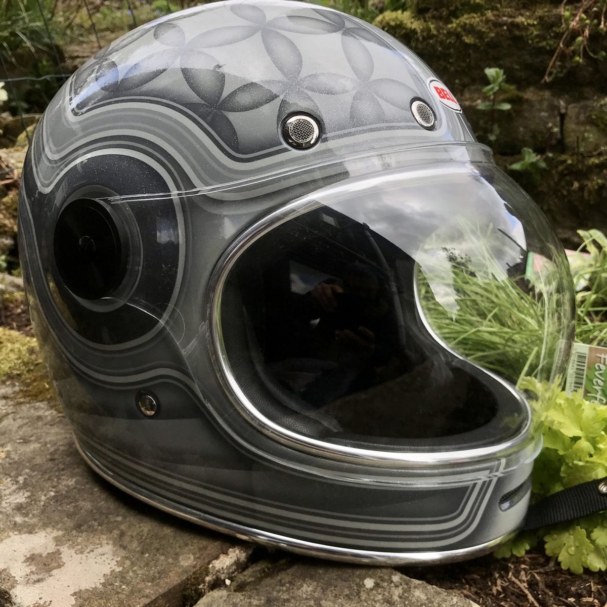 Charlie says… My girlfriend needed a new motorcycle helmet, but could not find anything where she liked the style. Too neon, too zombie, too transformery, too blokey, and generally just too shite. So I set off in search of a helmet with so much style she wouldn’t even know if she didn’t like it. The search ended on ebay with a Bell Bullitt in a custom (but mass production) paint job from Chemical Candy Customs in Texas. On one side we have grey and silver flames in a subtle glitter finish, and if you don’t like that, the other side has flowers. However first you have to get past the bubble visor, which is pretty easy if you are into Ziggy and The Spiders From Mars, and happen to be floating in a most peculiar way. Does Tanya like her new lid… no one knows, including Tanya.