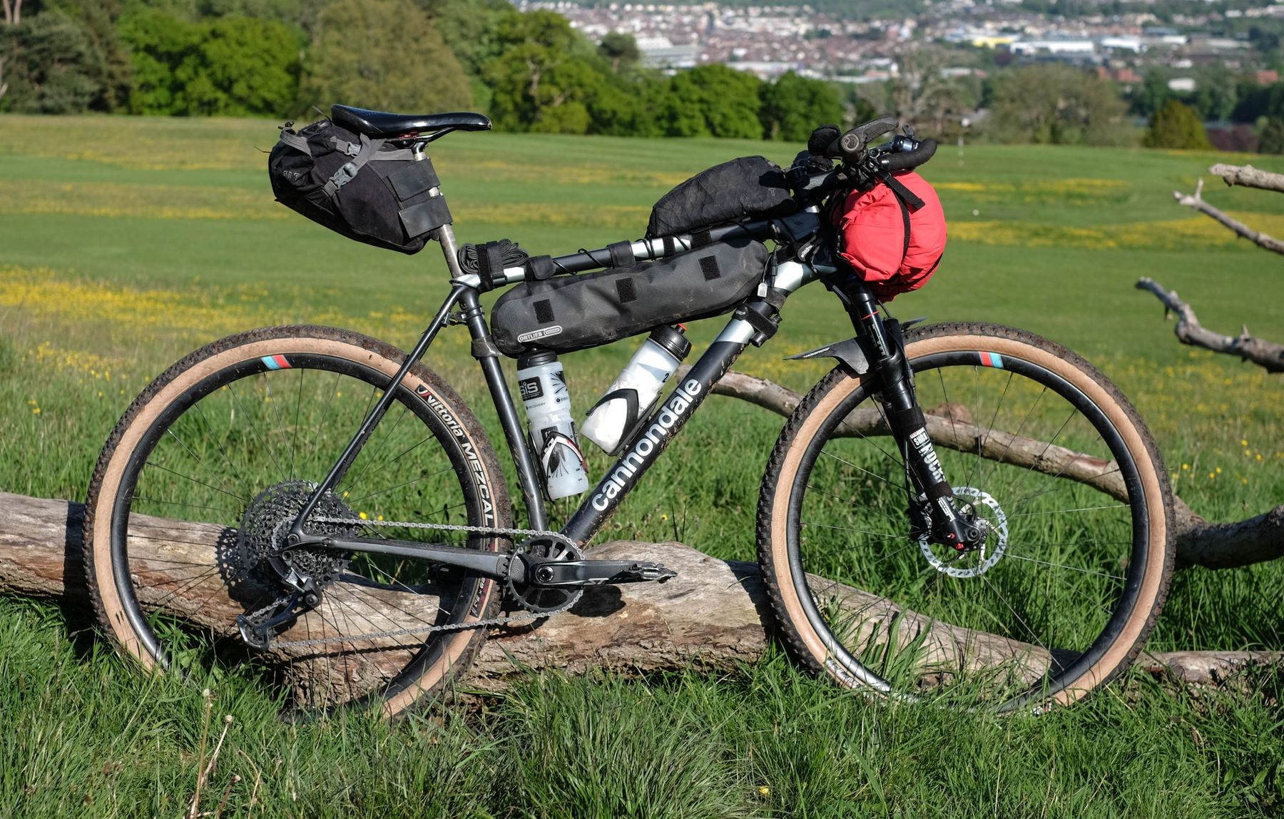 Kit: Revelate Design Bags mostly, mix of second hand and a local shop stocks them. Sweetroll handlebar, Spinelock, what a seat pack, Montane Jaws 10 trail running bag and soft flask (not pictured) stashed in handlebar bag. Clothing mixture of Fox and Endura kit. Sleeping system is an Alpkit Bivvy with an unbranded summer bag plus my Rab primaloft jacket, Marmot synthetic shorts and Rab winter walking mitts with Decathlon overgloves, this is also my warm kit. No cooking set up carried. Electronics include Garmin 520 for nav, InReach Mini for safety and phone as backup for both with large-ish external battery pack for recharging electronics and lights.