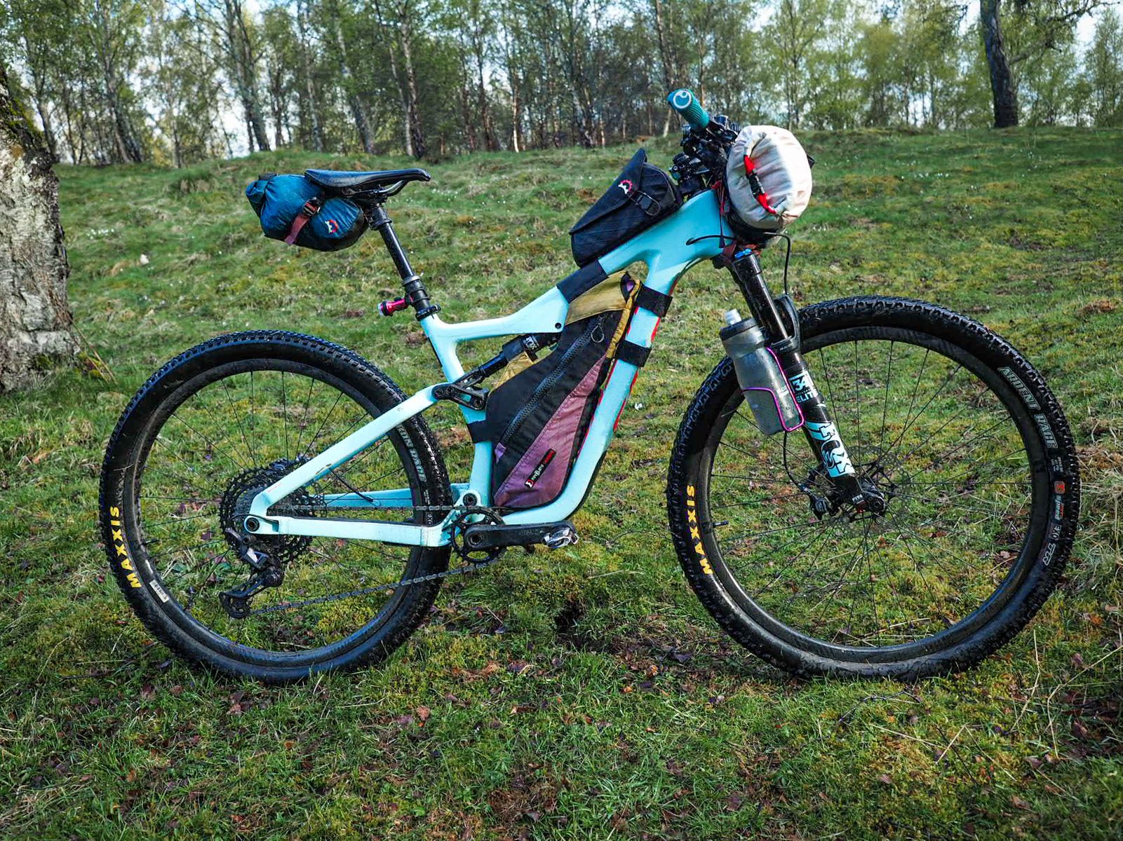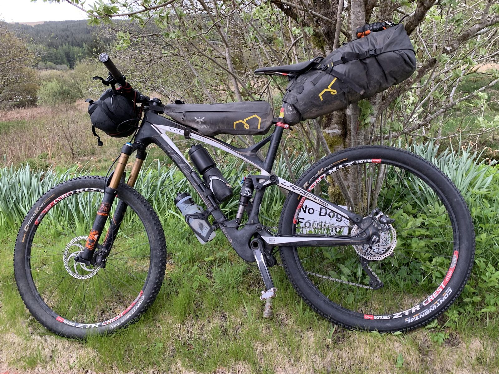 Kit: Luna Solo tent with Neoair mat and OMM Raid sleeping bag in Wildcat front harness. Navigation with Garmin 810 and printed map backups. 45 Nrth Japanther shoes, Paramo Quito Analogy jacket, BAM bamboo socks, Morvelo Overland shorts my and trusty c. 1998 The North Face top still going strong. Exposure Axis helmet light. Snacks and electronics in AcePac fuelpod and stem cell. Open-ear headset with episodes of podcasts by Patrick Farnsworth at BoD. Servicing by Aberfoyle Bike.