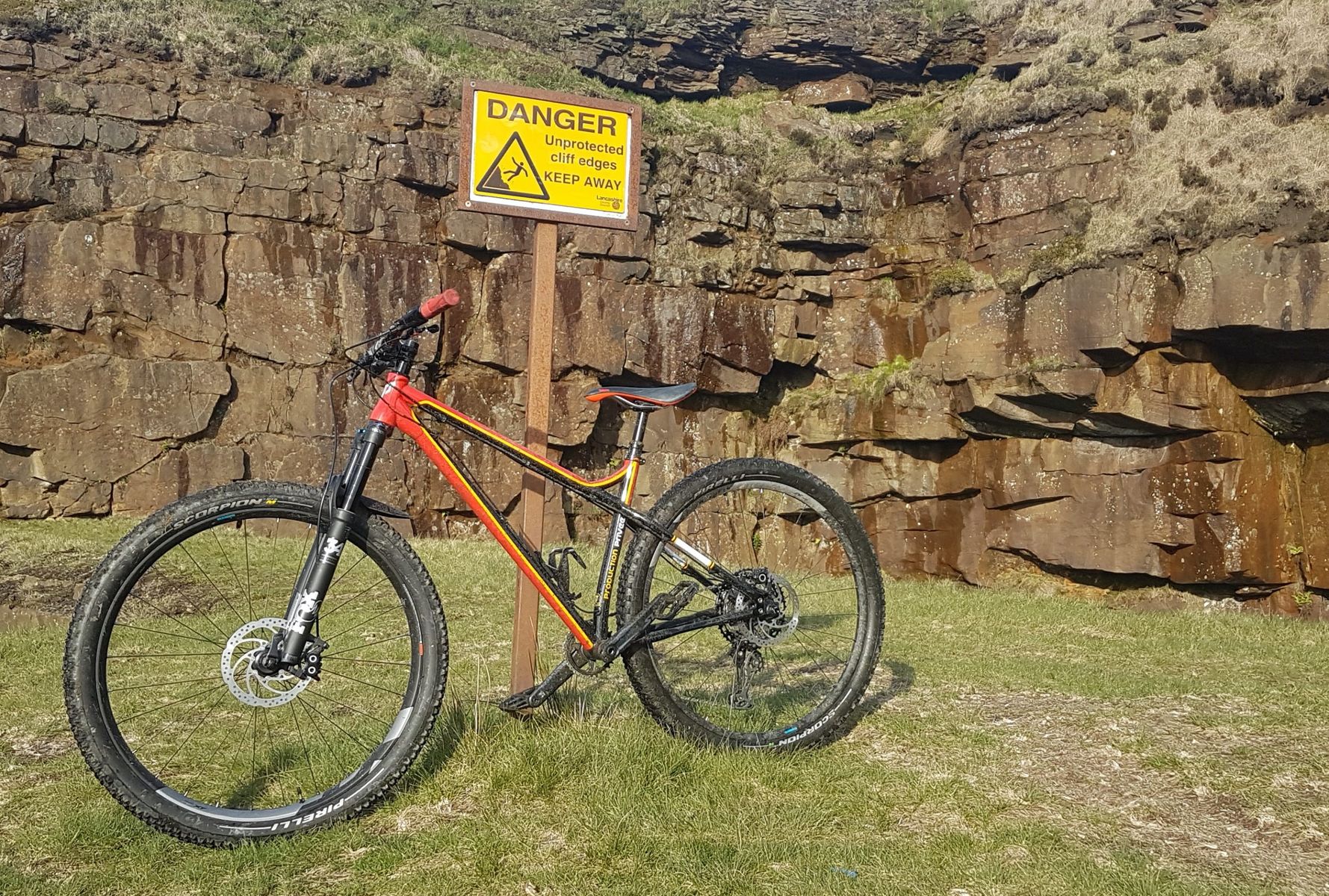 I had been hunting for the perfect bike for some time and had a few criteria I knew I wanted: Hardtail, due to both cost and preference. 27.5″ wheels, just cos 29 seemed too big and I preferred the idea of smaller & lighter, being used to 26″. Not a steel frame, because I’m not really a fan of the thin straight tubed retroish look they usually have. Give me nice swoopy hydroformed alu any day.