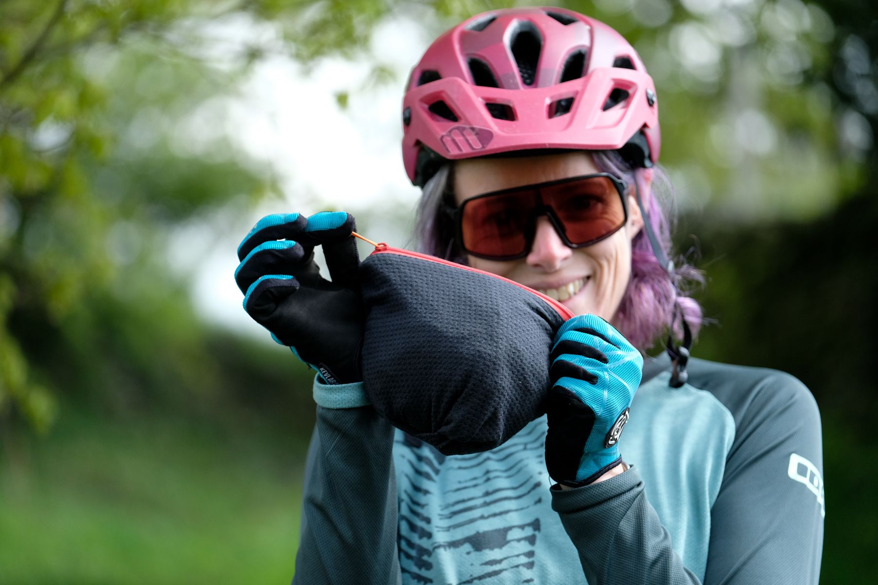 The 7MESH Copilot only has one pocket, at an angle on the left lower ribcage. This acts as a stuff sack, so you can bundle the jacket into itself and pack it down – it’s not tiny, but it is tidy. As a pocket, it’s OK, but it’s quite shallow towards the front, meaning if you forget to zip it up you are at risk of tipping things out as you ride along. My giant iPhone does fit in it, but it places it between my hip bones and rib cage, which I found uncomfortable. Personally, I’d rather store my stuff safely in a backpack rather than in this pocket.
